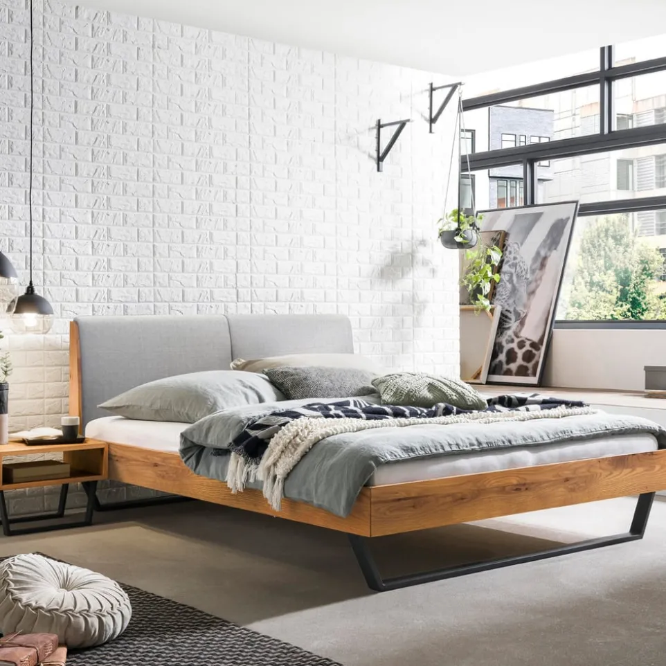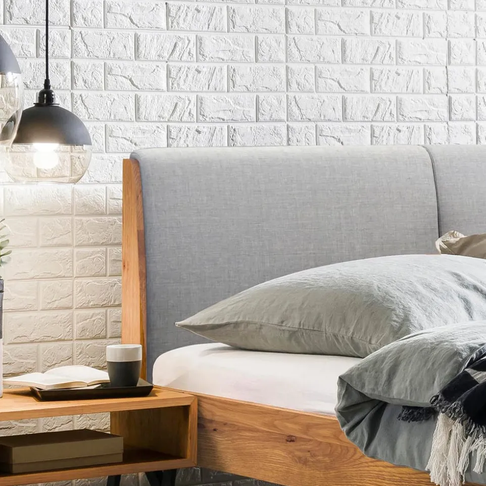 Bett PIETRO vereint robustes Handwerk und elegantes Design. Das Bett ist sehr stabil und verliert seine Kraft auch dann nicht, wenn Sie es mehrmals auf- und abbauen. Für einen guten Halt sorgen das Untergestell aus Metall sowie der Rahmen aus Massivholz. Er ist in rustikaler Kernbuche, natürlicher Wildeiche oder edlem Nussbaumholz bestellbar. Das gepolsterte Kopfteil gibt es in Stoff oder Kunstleder. Ein Qualitätsprodukt der Marke Hasena. Ohne Bettinhalt (exkl. Lattenrost, Matratze, etc.).
