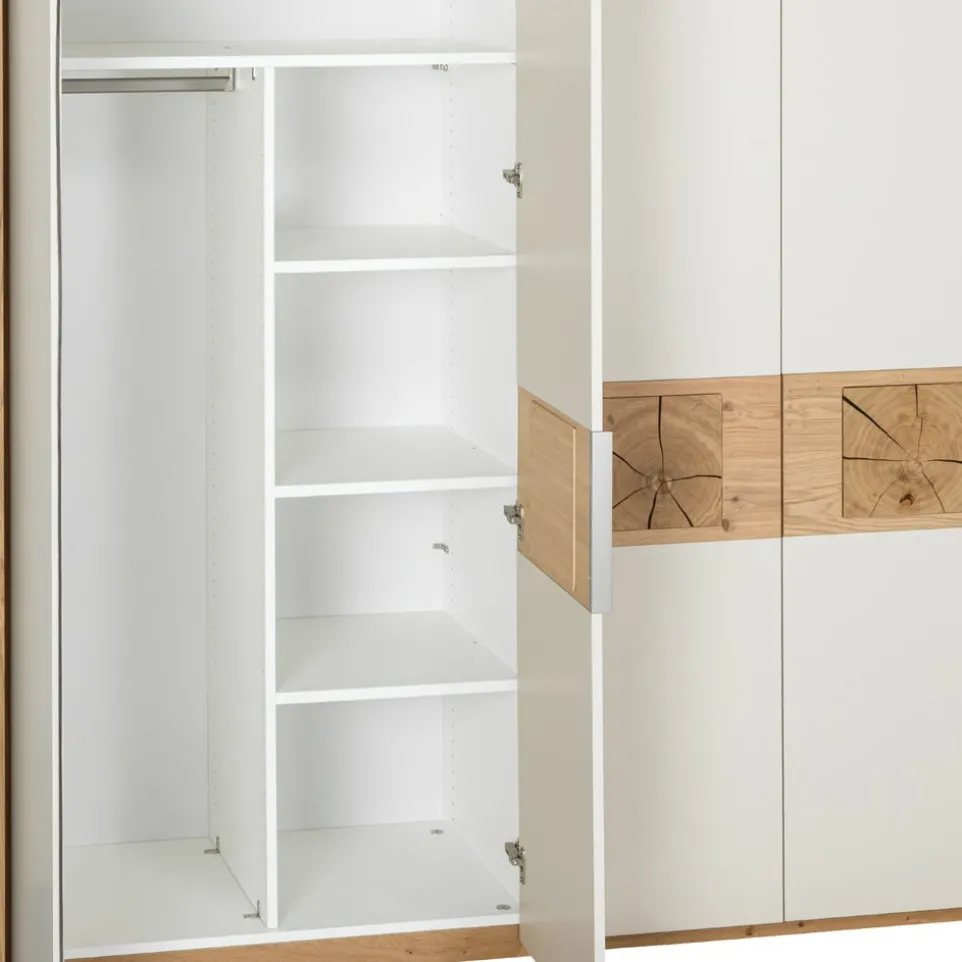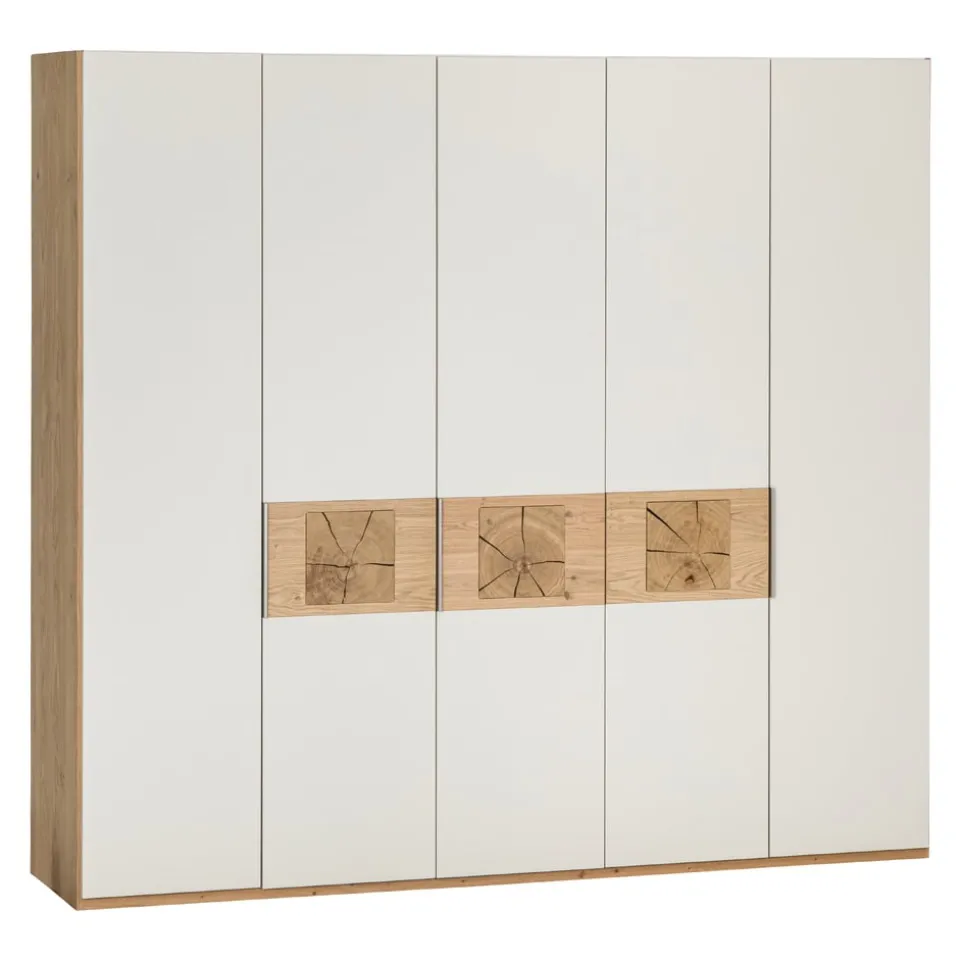 Du musst mit diesem Drehtürenschrank keine Gedanken mehr an die Frage verschwenden, wo du deine Kleidung verstaust. Lass dich von der erstklassigen Qualität und dem tollen Design der Marke Dieter Knoll begeistern. Der Schrank erweitert mit seinen fünf Türen deinen Stauraum und macht in seinem klassischen Stil eine hervorragende Figur. Das Möbelstück in der Farbe Eiche verfügt über ästhetische mattnickelfarbene Griffe aus Metall. Für eine hervorragende Verarbeitungsqualität steht das Label „Made in Germany“. Du schaffst mit diesem Schrank zusätzliche Verstaumöglichkeiten.