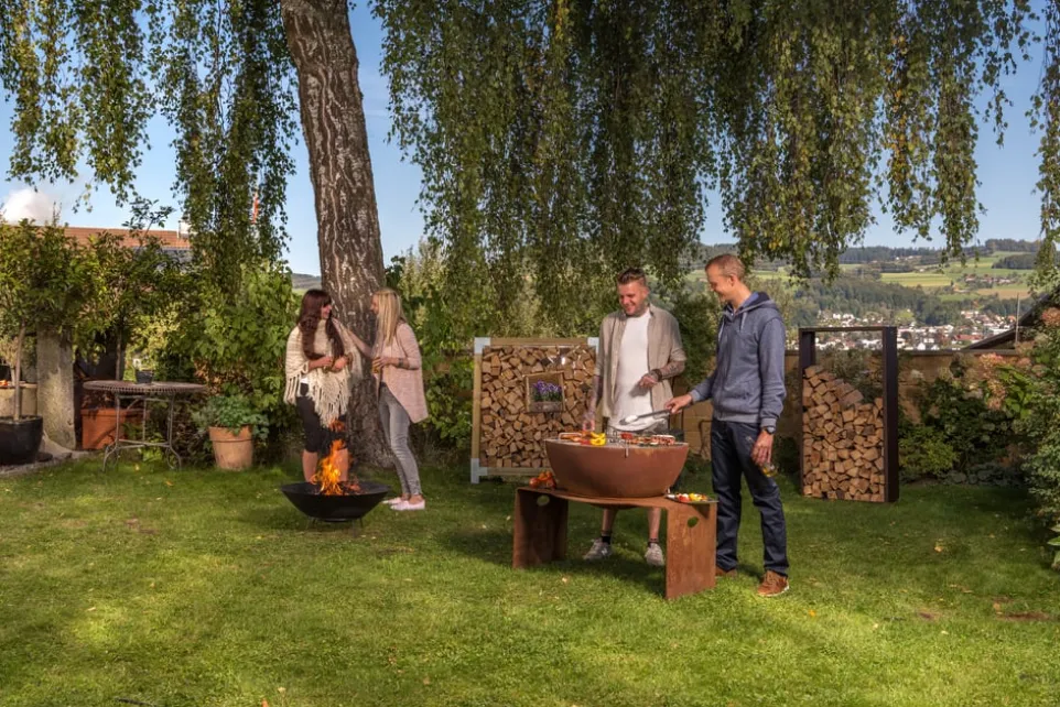 Ein Hauch von modernem Design trifft bei der Feuerschale Blacky von Nouvel auf Funktionalität. Hergestellt aus robustem Metall, ist sie die perfekte Ergänzung für entspannte Abende im Garten. Du kannst wählen, ob du Holz oder Holzkohle anfeuern möchtest, um eine gemütliche Atmosphäre zu schaffen. Durch ihr schlichtes und dennoch ansprechendes Design fügt sich die Feuerschale harmonisch in jede Umgebung ein. Egal ob du eine kleine Runde mit Freunden planst oder einen ruhigen Abend allein geniessen möchtest, die Feuerschale Blacky bietet dir stets das richtige Ambiente. Ideal für Momente der Entspannung und Geselligkeit.