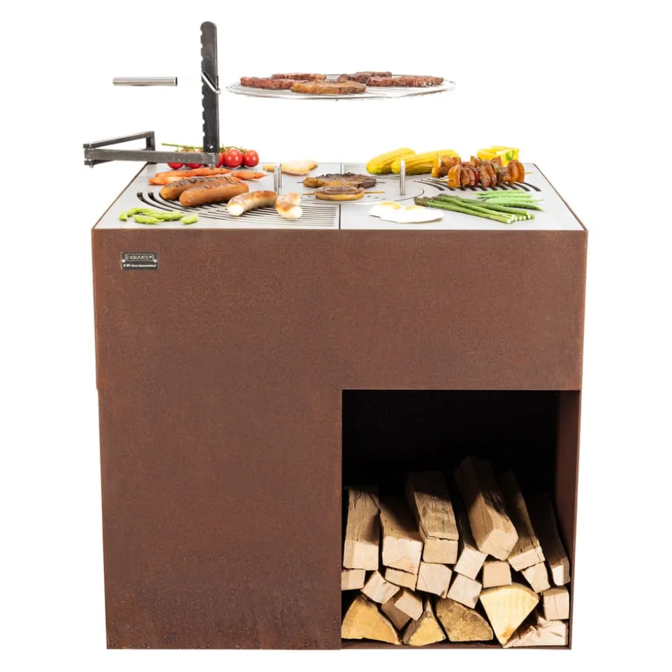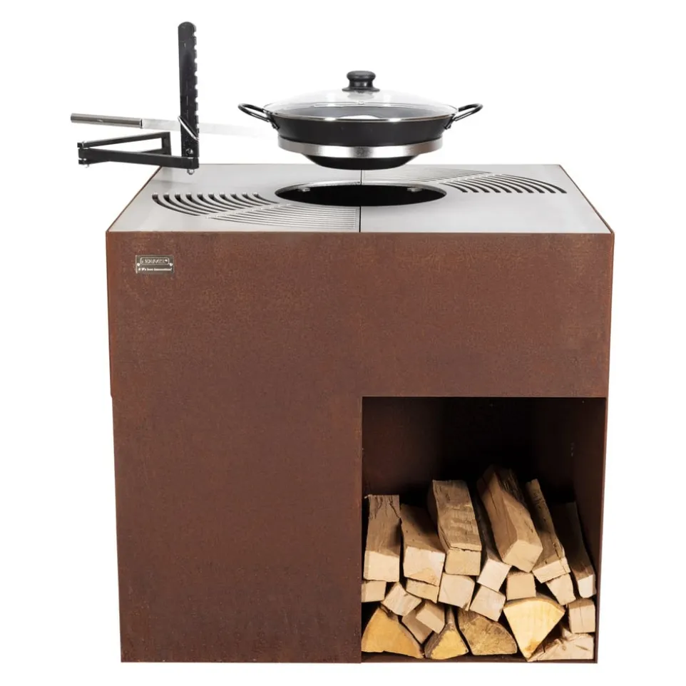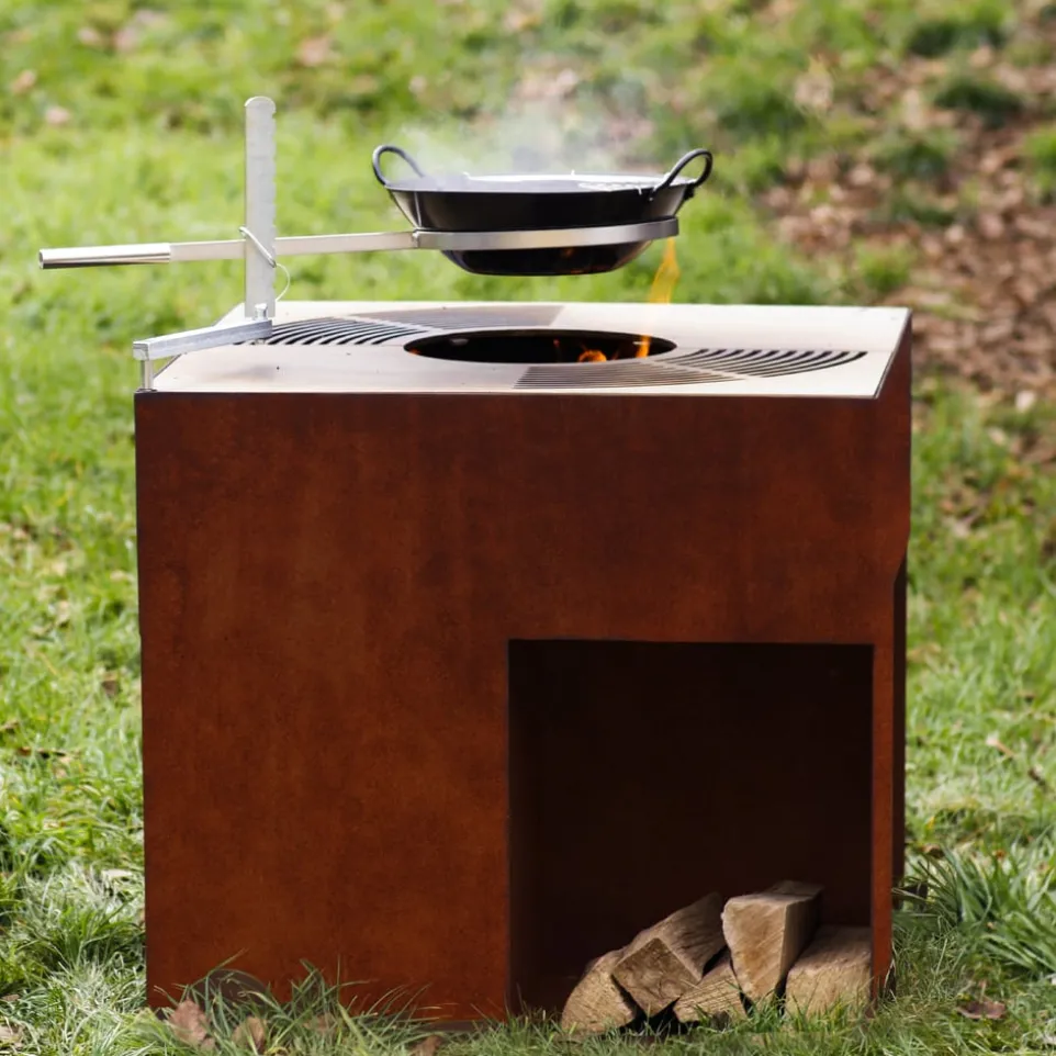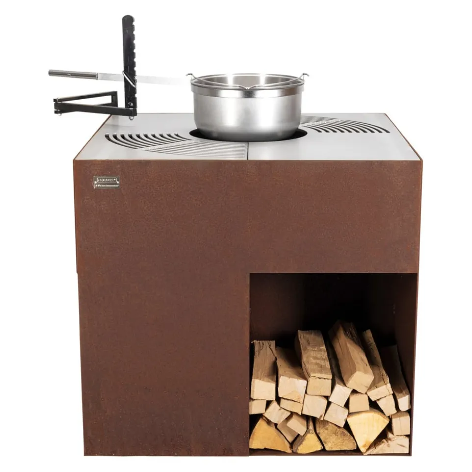 Erst ein leckeres BBQ geniessen, dann gemütlich am Feuer beisammensitzen oder umgekehrt: Feuerstelle CUBO PRO ist gerüstet. Die Grillfläche besteht aus einem zweigeteilten Rost aus Edelstahl. Für die Benutzung als Feuerschale entfernen Sie einfach die Rondelle in der Mitte. Separat erhältlich ist ein Schwenkarm der Marke Nouvel, mit dem Sie Pfannen über dem Feuer befestigen können. Wie wär’s mal mit einem feinen Fondue?