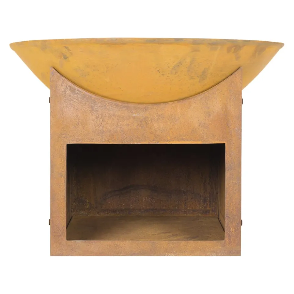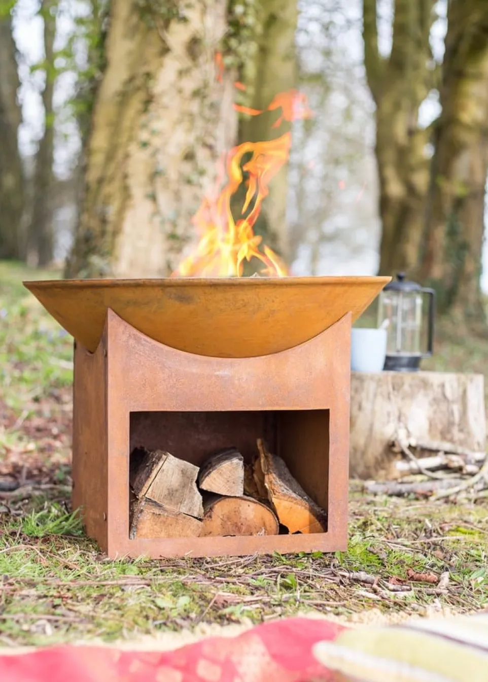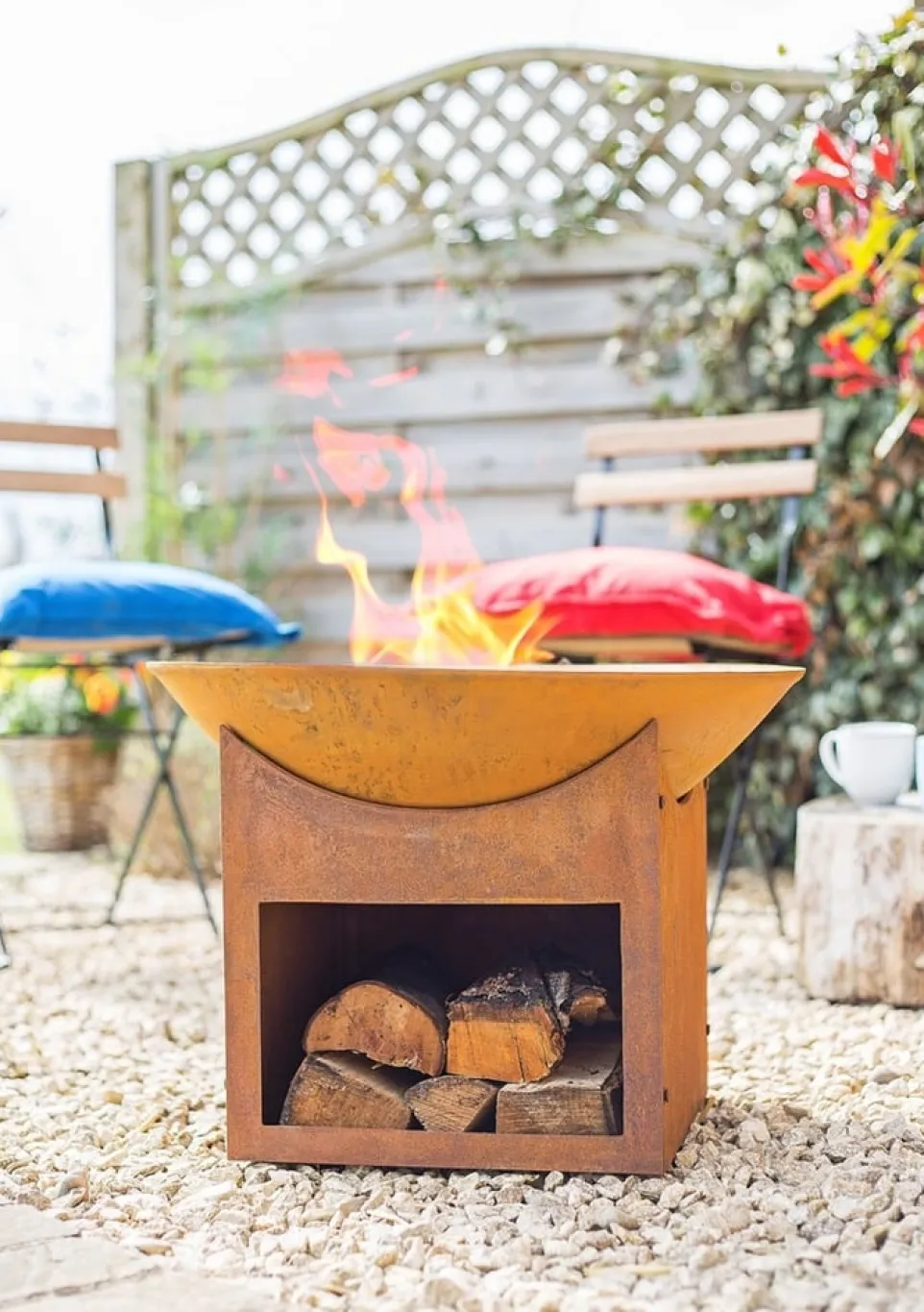 Die Feuerschale MUMBAI besticht mit einer klaren Formgebung und einer attraktiven Rost-Optik. So wird die Schale aus Stahl und Gusseisen schnell zum Hingucker in deinem Garten. Ausgesprochen praktisch zeigt sich auch das integrierte Holzstaufach – so hast du mit der Feuerschale MUMBAI alles parat, was es für ein stimmungsvolles Lagerfeuer braucht!