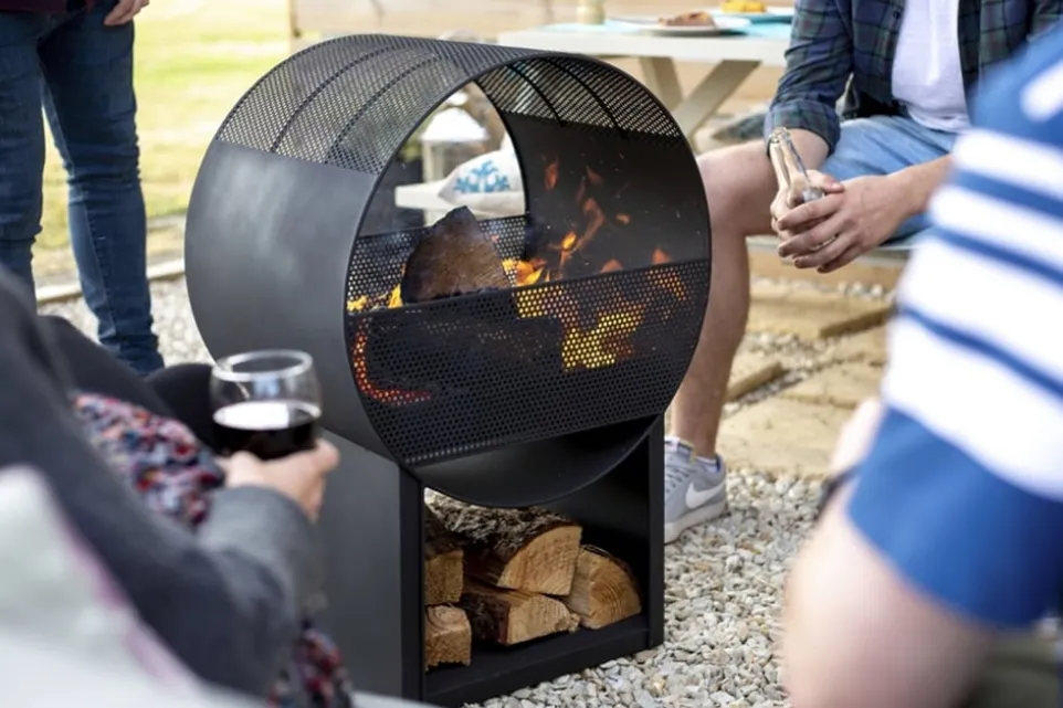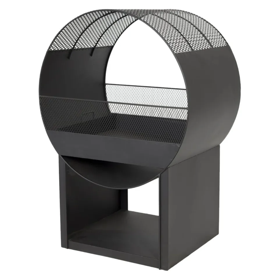 Bring Stil und Gemütlichkeit in deinen Aussenbereich! Mit der Feuerschale PORTHOLE aus pulverbeschichtetem Stahl geniesst du Lagerfeuer-Romantik an einer robusten und langlebigen Feuerstelle. Dank der ansprechenden Bauweise kommt das Flammenspiel hervorragend zur Geltung, während die Metallgitter in den Seitenteilen dich verlässlich vor einem Funkenflug schützen. Komplettiert wird die Feuerschale PORTHOLE durch ein praktisches Staufach für dein Brennholz. So verbringst du entspannte Stunden in deiner Outdoor-Area!