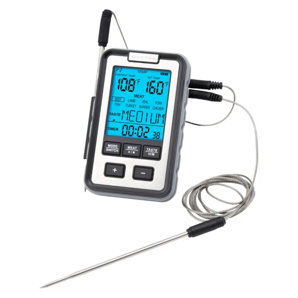 Der Grill-& Fleischthermometer von Broil King bietet dir präzise Temperaturkontrolle für das perfekte Grillergebnis. Dieses Zubehör ist aus hochwertigem PVC gefertigt und unterstützt dich bei der Zubereitung von Fleischgerichten auf dem Grill. Du kannst damit die Temperatur deines Grillguts genau überwachen, um sicherzustellen, dass es immer auf den Punkt gegart ist. Bitte beachte, dass die benötigten Batterien nicht im Lieferumfang enthalten sind. Das durchdachte Design und die einfache Handhabung machen dieses Thermometer zu einem unverzichtbaren Begleiter für jeden Grillabend. Vertraue auf Broil King, um dein Grillvergnügen zu optimieren.