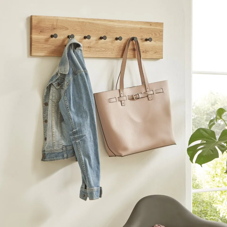 Massive Eiche trifft auf modernes Design: Die Hakenleiste Torino von Carry Home ist nicht nur funktional, sondern auch ein echter Hingucker in deinem Eingangsbereich. Hergestellt aus hochwertigem, massivem Eichenholz, bietet sie dir eine stabile und stilvolle Lösung für Jacken, Taschen und mehr. Die natürliche Holzstruktur verleiht jedem Raum Wärme und Charakter, während die klaren Linien und das schlichte Design zeitlose Eleganz ausstrahlen. Mit der Hakenleiste Torino bringst du Ordnung und Stil in dein Zuhause. Egal, ob im Flur oder im Schlafzimmer – sie passt sich nahtlos jedem Ambiente an.