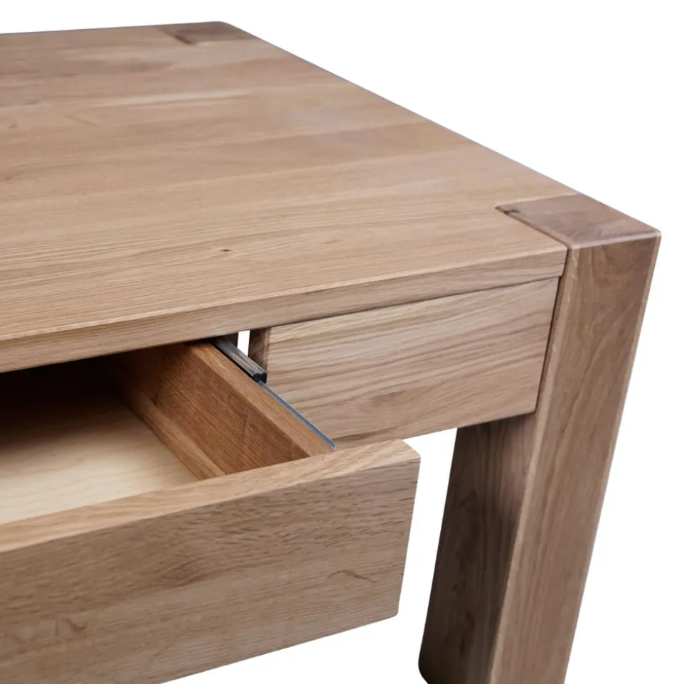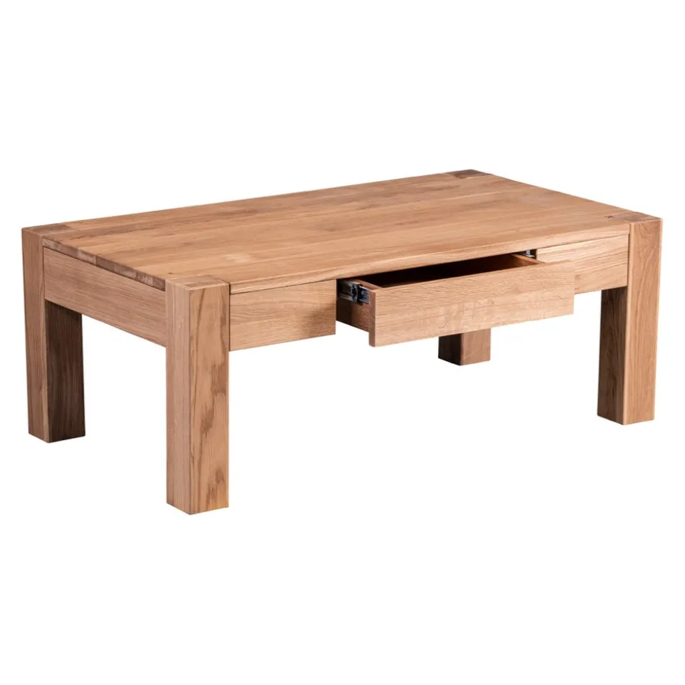 Massive Wildeiche verleiht dem Klubtisch Bern von Johann Jakob eine beeindruckende Robustheit. Die rechteckige Form der geölten Deckplatte strahlt schlichte Eleganz aus und bietet dir eine stilvolle Ablagefläche. Praktisch ist die integrierte Schublade, die für zusätzlichen Stauraum sorgt. Das Gestell aus massiver Wildeiche ergänzt das Design harmonisch und bietet stabilen Halt. Dieser Couchtisch ist nicht nur ein Möbelstück, sondern ein Ausdruck von zeitloser Handwerkskunst. Lass dich von der natürlichen Schönheit der Wildeiche inspirieren und entdecke, wie der Klubtisch Bern deinem Wohnraum eine warme und einladende Atmosphäre verleiht.