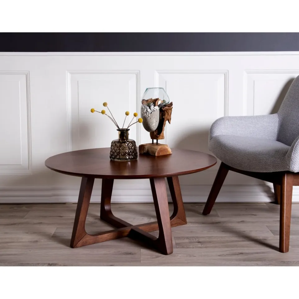 Eine runde Plattenform verleiht dem Klubtisch Hellerup von Johann Jakob eine harmonische Ausstrahlung. Gefertigt aus hochwertigem Walnussholz, bietet dieser Tisch eine elegante Ergänzung für dein Wohnzimmer. Das Walnussfurnier sorgt für eine langlebige und edle Oberfläche, die sich vielseitig kombinieren lässt. Mit einem Durchmesser von 75 cm und einer Höhe von 36 cm fügt sich der Tisch optimal in verschiedene Raumkonzepte ein. Ob als zentraler Punkt im Raum oder dezent neben dem Sofa platziert, der Klubtisch Hellerup überzeugt durch seine stilvolle Erscheinung und hochwertige Verarbeitung. Ideal für Liebhaber zeitlosen Designs.