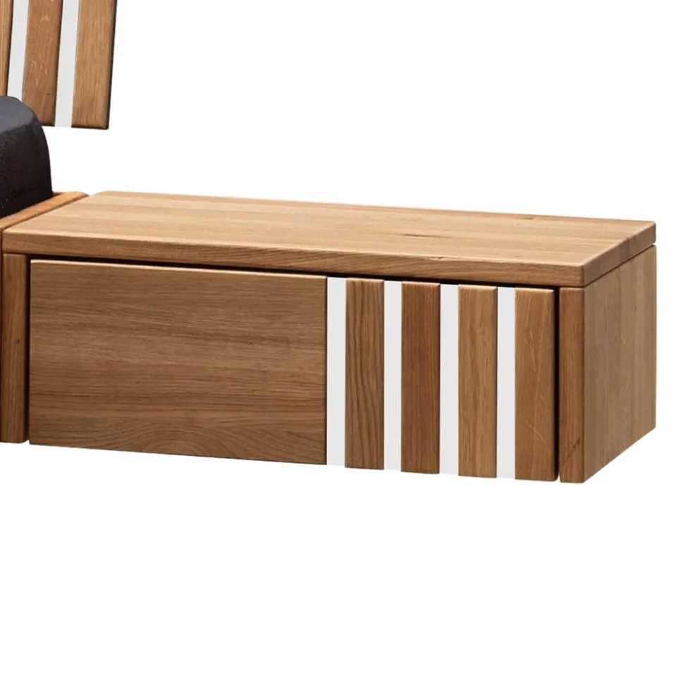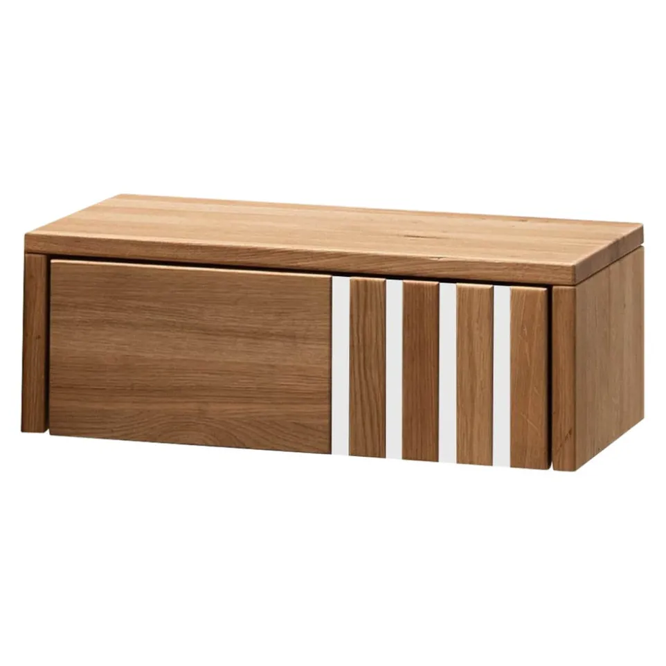 Die edle Konsole Kjerag von edy&liv vereint die natürliche Schönheit der Wildeiche mit funktionalem Design. Das hochwertige Holz besticht durch seine einzigartige Maserung und verleiht deinem Raum eine warme Ausstrahlung. Mit einer praktischen Schublade bietet die Konsole nicht nur ästhetischen Mehrwert, sondern auch nützlichen Stauraum für alltägliche Gegenstände. Ob im Flur, Wohnzimmer oder Büro – die Kjerag-Konsole fügt sich harmonisch in jedes Ambiente ein. Die Kombination aus natürlichem Material und klarer Linienführung macht dieses Möbelstück zu einem zeitlosen Begleiter in deinem Zuhause.