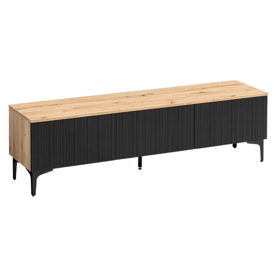 Mit drei Türen bietet das Lowboard Kleo von BYYU eine praktische Lösung für dein Wohnzimmer. Die Kombination aus Eichenholz und Holzwerkstoff verleiht dem Möbelstück eine robuste und zugleich stilvolle Erscheinung. Die Verwendung von Spanplatte zeugt von einer soliden Holzqualität, die Funktionalität und Langlebigkeit verspricht. Als Kastenmöbelart eignet sich das Lowboard ideal für eine Vielzahl von Anwendungen, sei es zur Aufbewahrung von Mediengeräten oder anderen Alltagsgegenständen. Die Front aus Holzwerkstoff rundet das Design ab und sorgt für ein harmonisches Gesamtbild. Ein durchdachtes Möbelstück, das deinen Wohnraum bereichert.