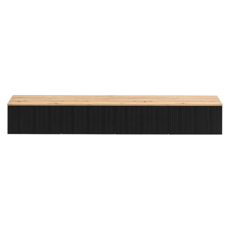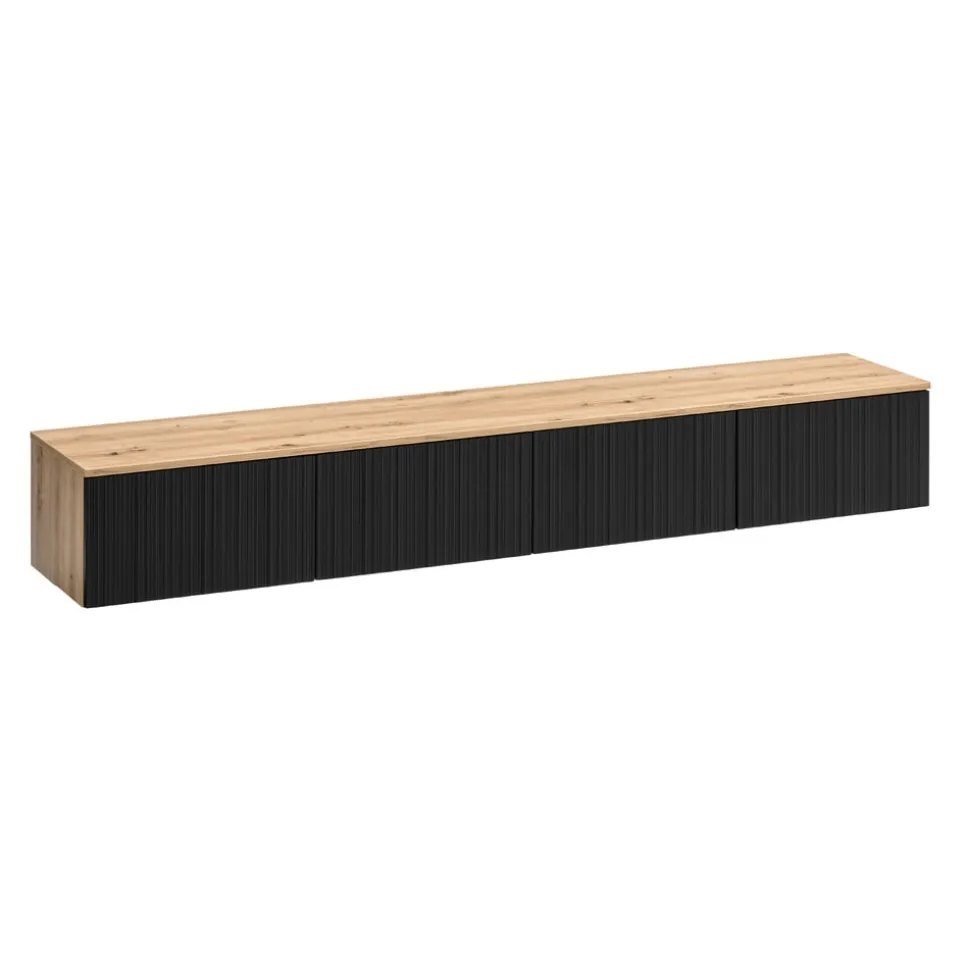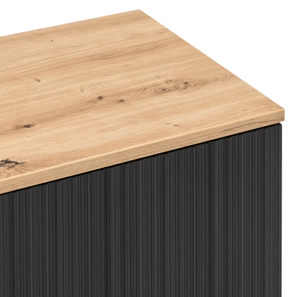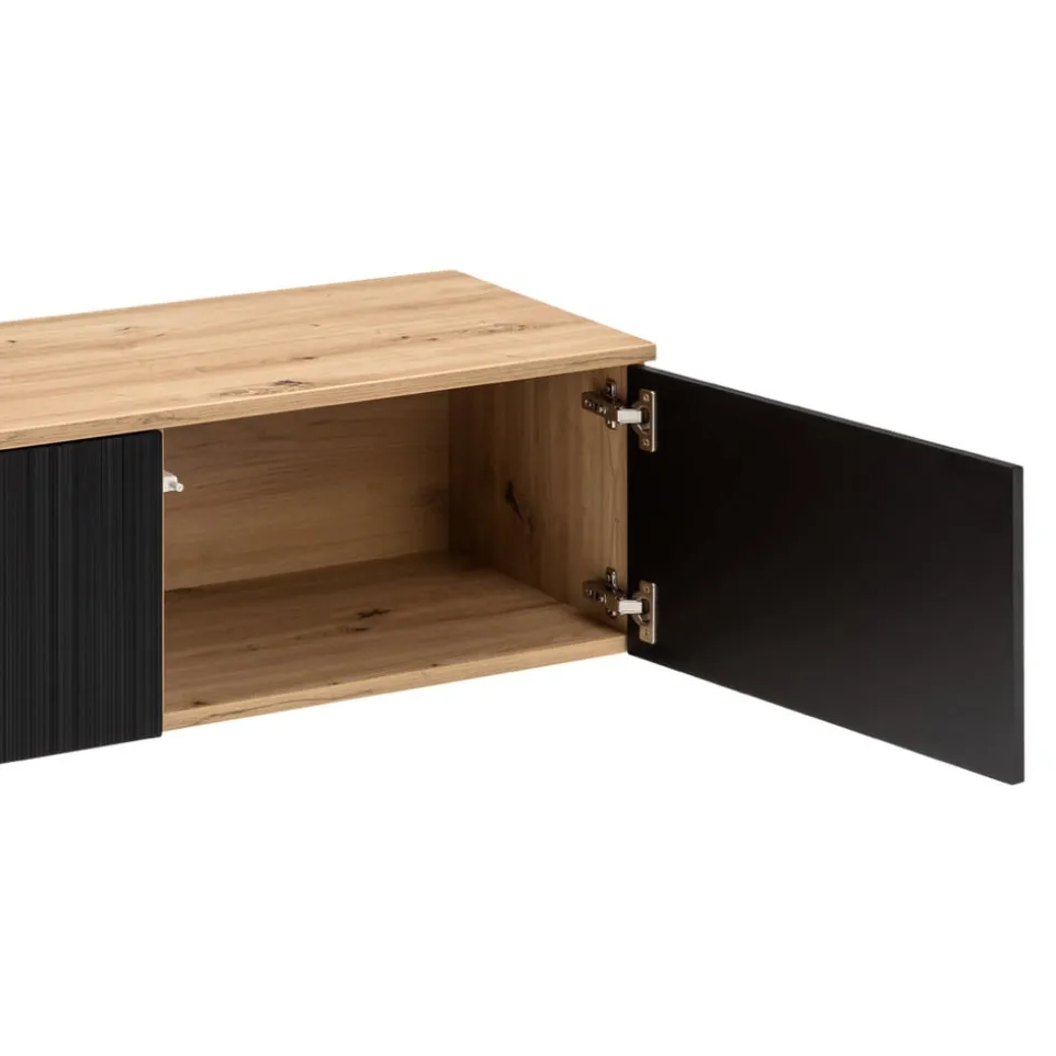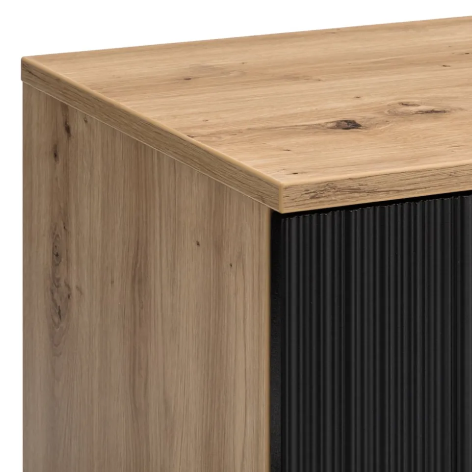 Eiche als Holzart macht das Lowboard Kleo von BYYU zu einem robusten und stilvollen Möbelstück. Mit vier Türen bietet es viel Stauraum und ist ideal für das Wohnzimmer geeignet. Als Kastenmöbelart präsentiert sich das Lowboard funktional und vielseitig. Gefertigt aus Holzwerkstoff und Spanplatte, vereint es Qualität mit einem modernen Design. Die Front aus Holzwerkstoff fügt sich nahtlos in die Gesamtoptik ein und verleiht dem Raum eine natürliche Note. Dieses Lowboard eignet sich hervorragend, um elektronische Geräte oder andere Gegenstände ordentlich zu verstauen. Es kombiniert ästhetische Ansprüche mit praktischer Funktionalität.