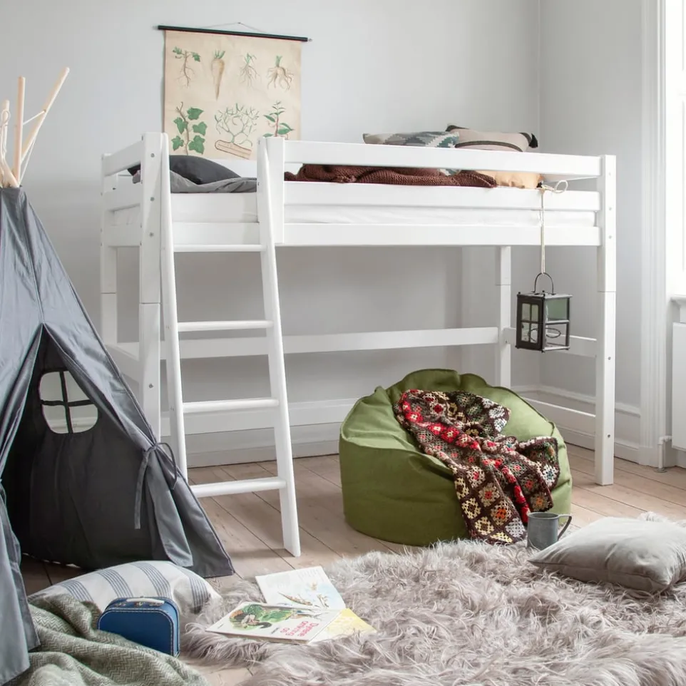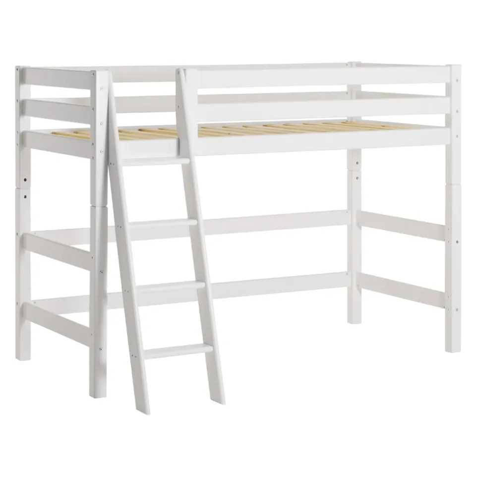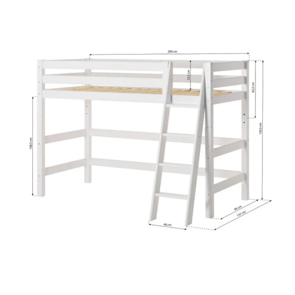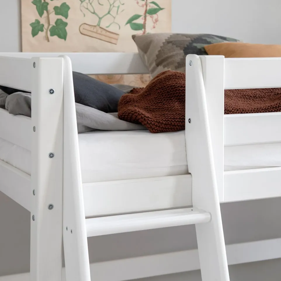 | Besonderheiten | Zum Spiel- oder Etagenbett umbaubar, inklusive Leiter, schräg, umweltfreundliche wasserbasierende Lacke |