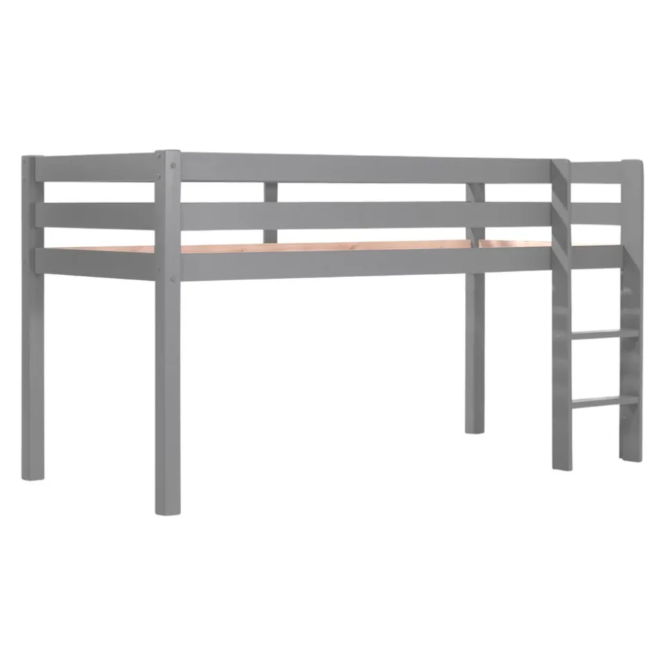 Machen Sie Ihr Kind zum König: Der Raum unter diesem Mittelhochbett bietet Platz für ein ganzes Schloss zum Spielen. Mit einer Höhe von ca. 70 cm eignet sich das Bett gut für Kinder, die noch zu klein sind für ein klassisches Hochbett. Für Sicherheit sorgen der umlaufende Absturzschutz und die breiten Tritte der Leiter. Diese ist links oder rechts montierbar. Inkl. Rolllattenrost, einfache Selbstmontage. In verschiedenen Farben und auch mit Rutschbahn erhältlich.