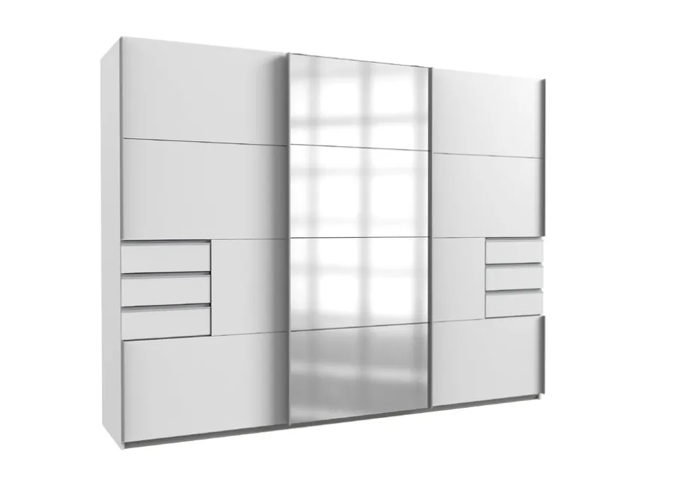 Drei Türen und sechs Schubladen bieten im Schiebetürschrank Saigon von MID.YOU reichlich Stauraum für deine Kleidung und Accessoires. Der Schrank besteht aus hochwertigem Holzwerkstoff und die Flachpressplatte sorgt für eine robuste und langlebige Konstruktion. Mit drei Abteilen hast du genügend Platz, um alles ordentlich zu organisieren. Der Schiebetürmechanismus spart Platz und ermöglicht einen einfachen Zugriff auf deine Sachen. Ob im Schlafzimmer oder im Ankleidezimmer, der Schiebetürschrank Saigon passt sich deinen Bedürfnissen perfekt an und sorgt für Ordnung und Übersichtlichkeit. Entdecke die praktische Seite deiner Einrichtung.