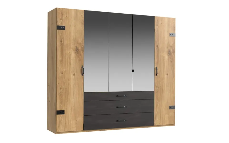 Dieser Schrank unterstützt dich, Ordnung zu halten, und verbreitet auch ein wohnliches Flair in deinen vier Wänden. Der Schrank trägt mit seinen drei Schubkästen dazu bei, deine vier Wände ordentlich zu halten, und ist mit fünf Türen versehen, hinter denen sich dir Stauraum zum Unterbringen verschiedenster Gegenstände bietet. Hol dir mit diesem Möbelstück die MID.YOU-Markenqualität nach Hause. Der graphitschwarze Schrank kann auch optisch durch sein trendiges Design punkten. Er ist mit ansprechenden graphitschwarzen Handgriffen aus Metall versehen, welche sich in die geschmackvolle Optik einfügen, und überzeugt mit „Made in Germany“-Qualität. Dieser Schrank bietet alles, was man zum übersichtlichen Verstauen benötigt.