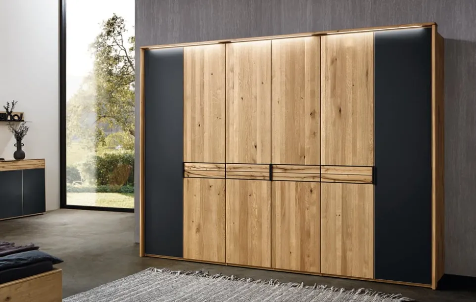 Massive Wildeiche trifft auf modernes Design: Der Schrank Vitus von VALNATURA bietet dir nicht nur Stauraum, sondern auch ein stilvolles Möbelstück für dein Zuhause. Mit seinen sechs Türen und der hochwertigen Verarbeitung aus massivem Holz überzeugt er durch Stabilität und Langlebigkeit. Die Wildeiche verleiht deinem Raum eine natürliche und warme Atmosphäre. Ob im Schlafzimmer, Wohnzimmer oder Flur, dieser Schrank fügt sich harmonisch in jede Umgebung ein. Schaffe Ordnung und bewahre deine Kleidung, Accessoires und vieles mehr sicher und stilvoll auf. Der Schrank Vitus ist die perfekte Wahl für alle, die Wert auf Qualität und Design legen.