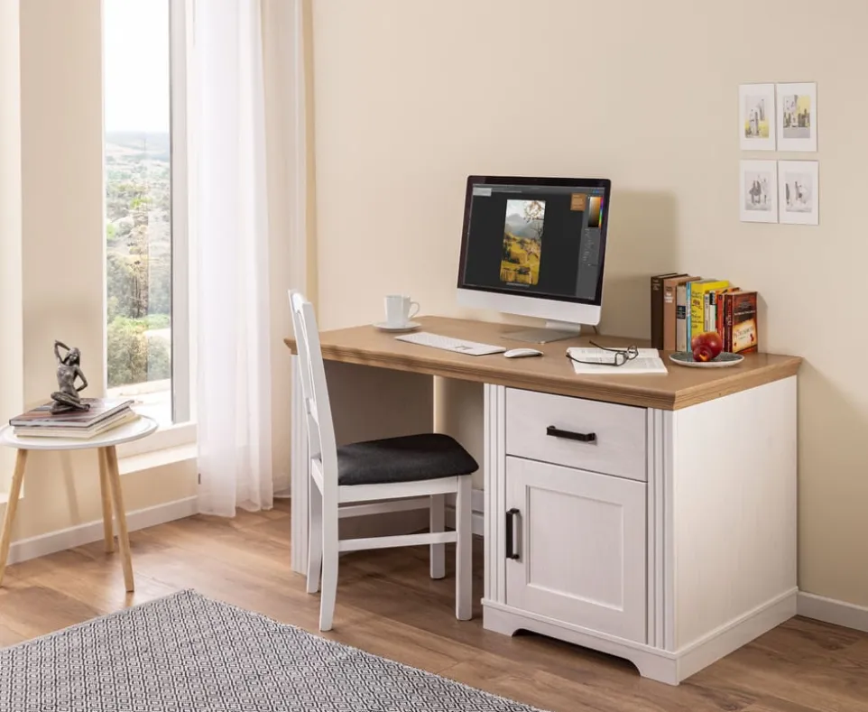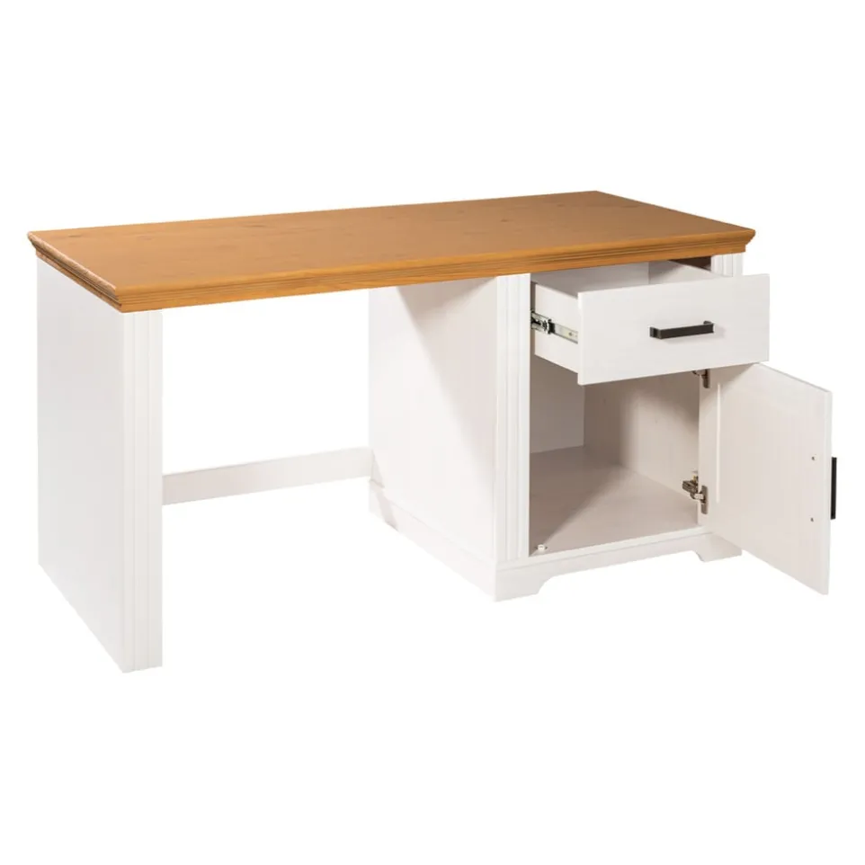 Massives Kiefernholz verleiht dem Schreibtisch Maluno von MID.YOU seine robuste Eleganz. Die rechteckige Plattenform bietet dir eine grosszügige Arbeitsfläche, die sowohl funktional als auch stilvoll ist. Mit einer Kombination aus Massivholz und MDF ist dieser Schreibtisch stabil und langlebig. Die eckigen Beine ergänzen das klare Design, was ihn zu einem zeitlosen Möbelstück macht. Ideal für dein Homeoffice, verbindet der Schreibtisch Maluno klassische Materialien mit modernem Design. Geniesse die natürliche Ausstrahlung des Holzes, die deinem Raum eine warme und einladende Atmosphäre verleiht.