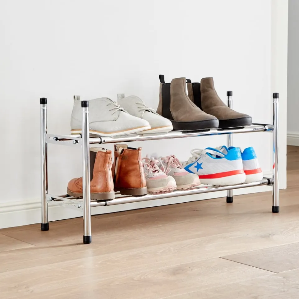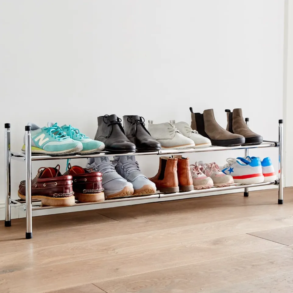 Mit STORE bleiben Sie flexibel. Das platzsparende Schuhregal ist seitlich ausziehbar. Damit lässt sich die Länge von 64 cm bis 118 cm justieren. Noch mehr Schuhe? Kein Problem! Stapeln Sie einfach 2 Regale übereinander. Im dezenten Industrielook passt das Schuhregal zu jedem Einrichtungsstil. Dazu passend finden Sie einen Kleiderständer in unserem Online-Shop.