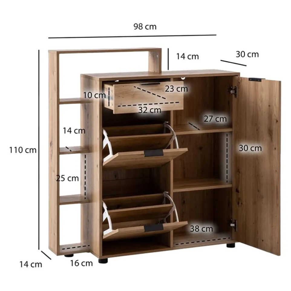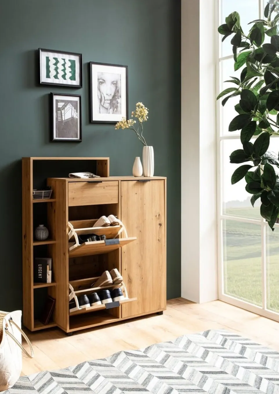 Hergestellt aus hochwertiger Spanplatte, präsentiert sich der Schuhschrank Eiche Dekor von MID.YOU als funktionales Möbelstück für dein Zuhause. Die Verwendung von Holz für Front und Korpus verleiht ihm eine natürliche Ausstrahlung und Robustheit. Mit seinem durchdachten Design bietet er ausreichend Platz für deine Schuhe und hält deinen Eingangsbereich stets aufgeräumt. Besonders in kleineren Wohnräumen erweist sich dieser Schuhschrank als praktischer Helfer, der Ordnung mit stilvoller Ästhetik verbindet. Seine dezente Erscheinung macht ihn zu einem vielseitigen Begleiter in jedem Wohnkonzept. Entdecke, wie dieser Schrank deinem Zuhause Struktur verleiht.