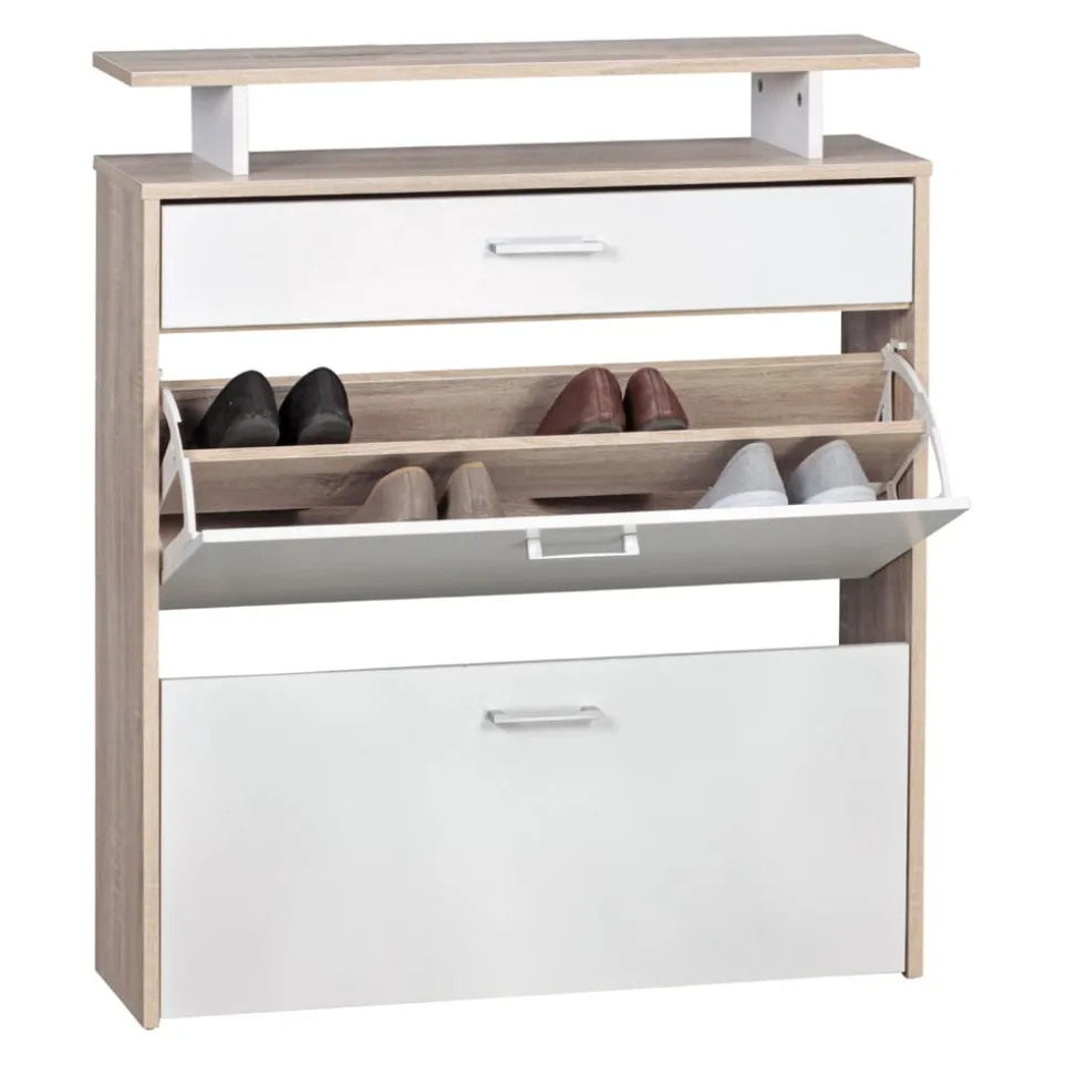 Verleihe deinem Flur Ordnung und Stil mit dem Schuhschrank Sonoma von MID.YOU. Hergestellt aus hochwertiger Spanplatte, bietet dieser Schuhschrank eine langlebige und stabile Lösung für deine Schuhaufbewahrung. Mit einer praktischen Schublade ausgestattet, kannst du kleine Accessoires griffbereit verstauen. Das schlichte und funktionale Design passt perfekt in jeden Eingangsbereich und sorgt für eine aufgeräumte Atmosphäre. Der Schuhschrank Sonoma ist nicht nur praktisch, sondern auch ein stilvoller Blickfang in deinem Zuhause. Entscheide dich für Qualität und Funktionalität mit diesem zeitlosen Möbelstück von MID.YOU.