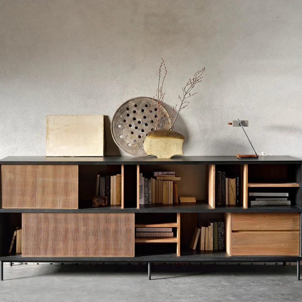 Dieses Sideboard sorgt für bewundernde Blicke. Gelungenes Design und ein einzigartiges Wohngefühl zeichnen die Kommode der Marke Ethnicraft aus. FSC®-zertifiziertes Holz wurde zur Verarbeitung des Stauraummöbels verwendet. Die schwarzen Füsse aus Metall sind ein stimmiges Detail im ästhetischen Erscheinungsbild der Kommode. Du wirst diese Kommode lieben.