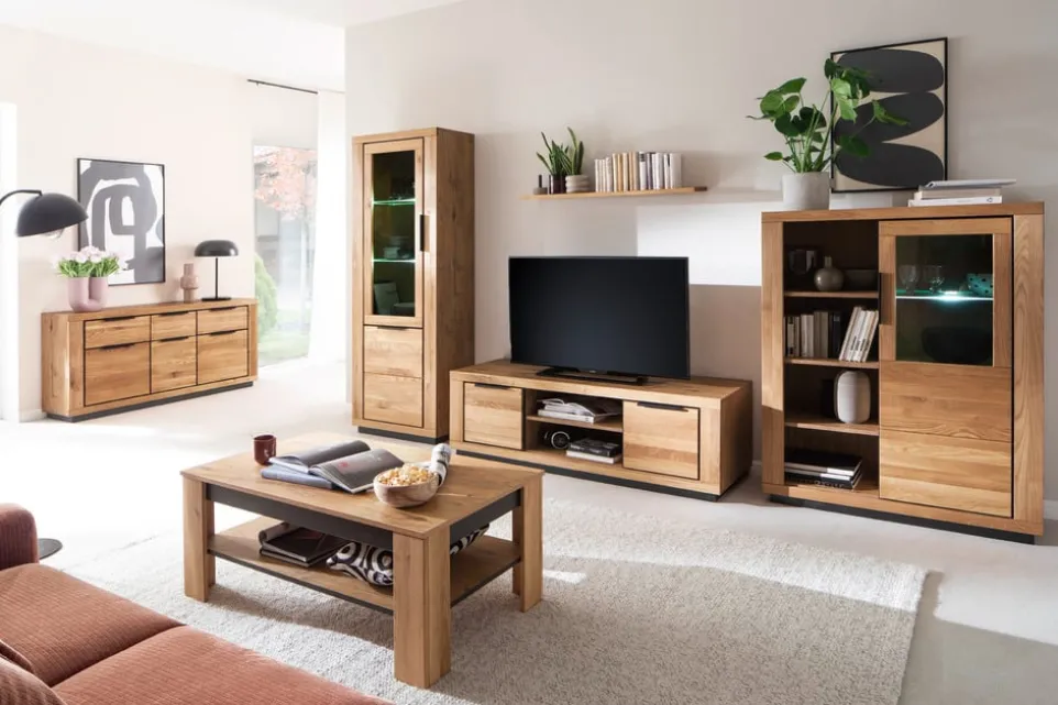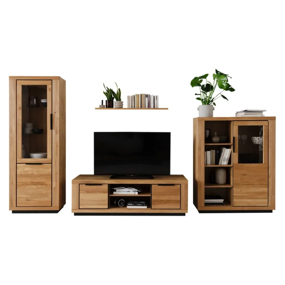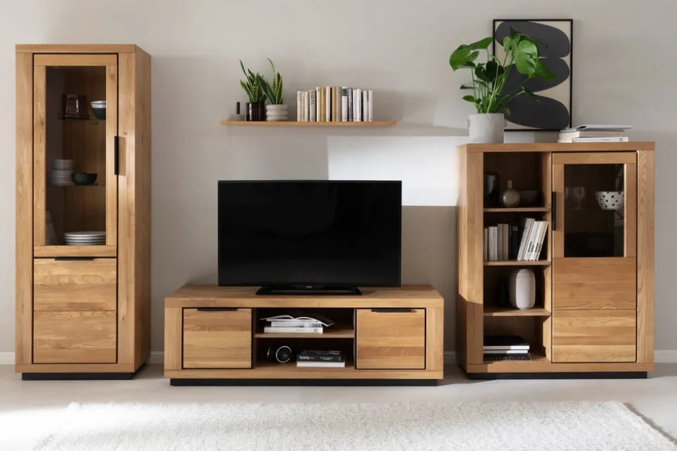 Massive Holzqualität steht bei der Wohnkombination Greno von MID.YOU im Mittelpunkt. Gefertigt aus hochwertiger Wildeiche, bietet sie Stabilität und Langlebigkeit. Diese Wohnkombination präsentiert sich als funktionale Lösung für dein Zuhause, auch wenn sie keine Beleuchtung beinhaltet. Das massive Holz verleiht jedem Raum eine natürliche Wärme und Eleganz. Ideal für alle, die Wert auf Qualität und ein klassisches Design legen. Die Kombination der natürlichen Materialien schafft eine einladende Atmosphäre, die zu jedem Einrichtungsstil passt. So wird dein Wohnbereich zu einem Ort der Entspannung und des Wohlbefindens.