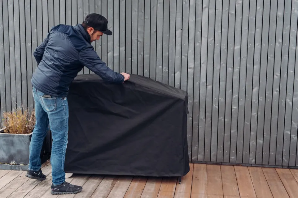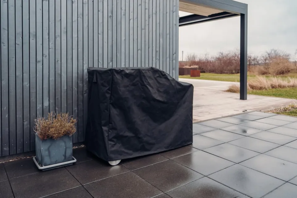 Durchdachte Details machen die Abdeckhaube Fire Kitchen von höfats zur idealen Ergänzung für deine FIRE KITCHEN mit BOWL 57. Die passgenaue Schutzhülle lässt sich einfach überziehen und bietet sicheren Halt dank des 4-fach Klettverschlusses. Belüftungsschlitze an den Seiten gewährleisten eine optimale Luftzirkulation unter der Haube. Gefertigt aus strapazierfähigem und wasserabweisendem Nylon-Polyester, schützt sie zuverlässig vor Witterungseinflüssen. Diese Hülle ist speziell für die Kompatibilität mit der FIRE KITCHEN mit BOWL 57 entwickelt worden und sorgt dafür, dass dein Grill in bestem Zustand bleibt.