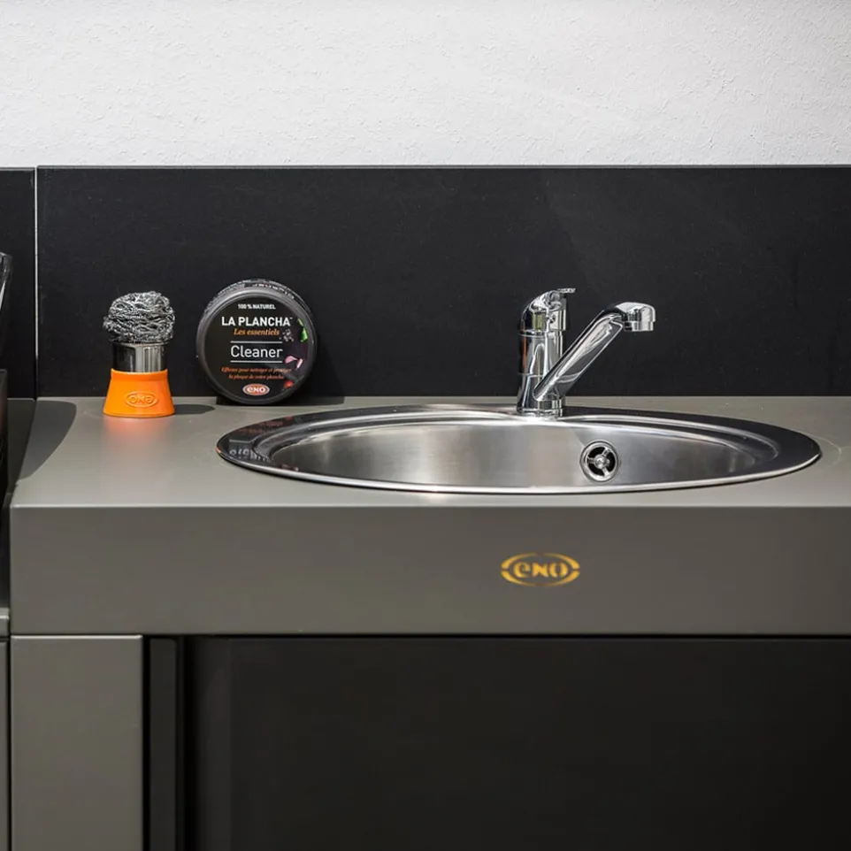 Das Abwaschbeckenmodul Eno von ENO Planchas beeindruckt mit seiner robusten Stahlkonstruktion, die sowohl verzinkt als auch lackiert ist. Diese Kombination garantiert Langlebigkeit und Schutz vor äusseren Einflüssen. Der integrierte Spritzschutz sorgt dafür, dass deine Küche stets sauber bleibt, während die praktische Tür zusätzlichen Stauraum bietet. Durch das klar strukturierte Design fügt sich das Modul harmonisch in jede Küchengestaltung ein und erfüllt höchste Ansprüche an Funktionalität und Stil. Mit diesem Modul erhält deine Küche ein funktionales und zugleich ästhetisches Element, das durch Qualität und durchdachte Ausstattung überzeugt.