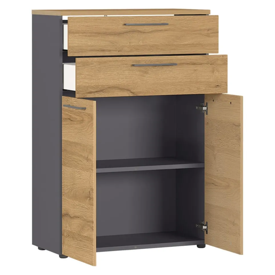 Aktenschrank AGENDA schafft Ordnung im Büro. Mit Schubladen mit Selbsteinzug, leise schliessenden Türen und verstellbarem Einlegeboden ist er der perfekte Office-Partner. Eine Melaminharzbeschichtung und stossfeste ABS-Kanten machen das Möbel hochwertig und pflegeleicht. Verschiedene Versionen erhältlich.