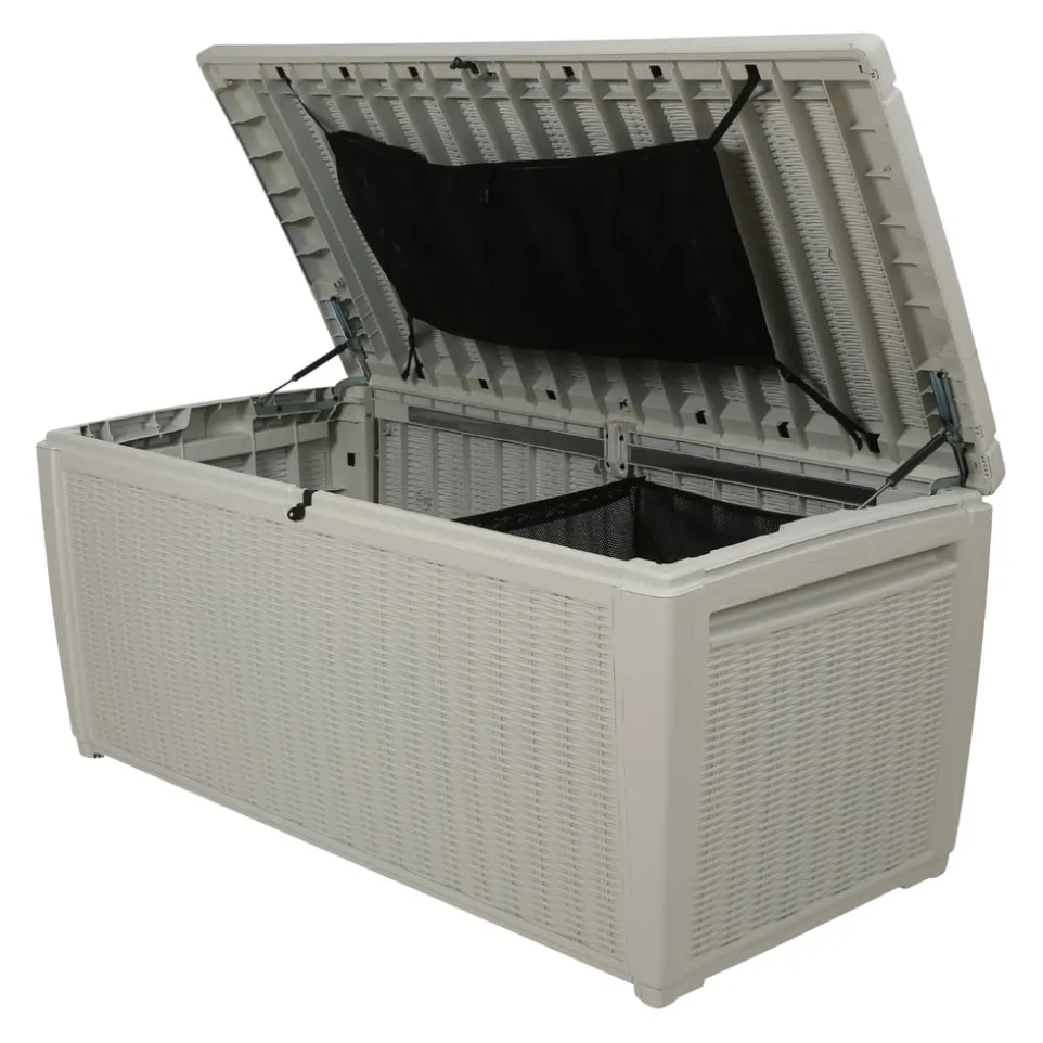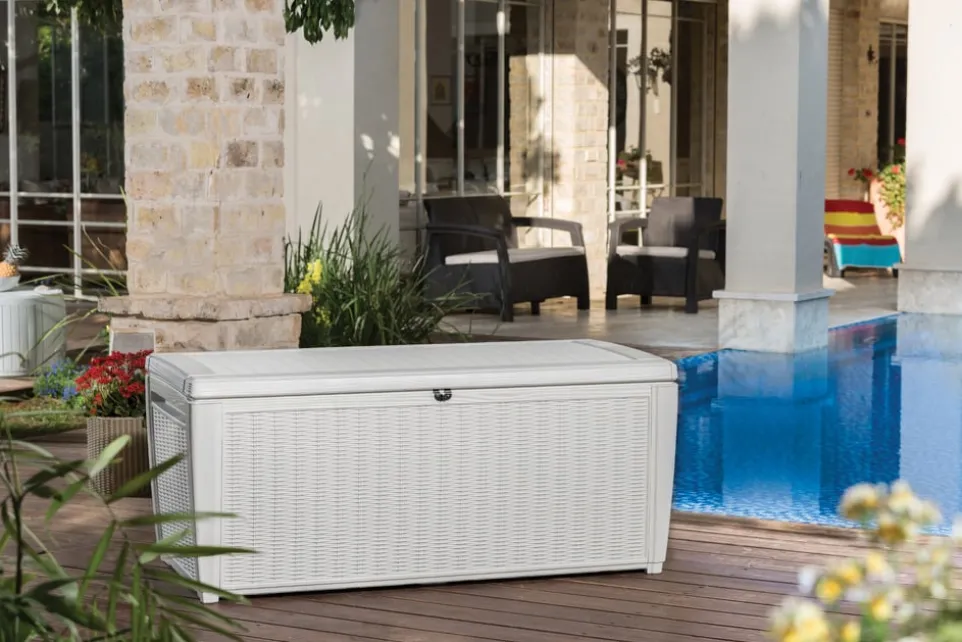 Entdecke die vielseitige Aufbewahrungsbox Sumatra von Keter, die nicht nur als Stauraum dient, sondern auch eine bequeme Sitzgelegenheit für zwei Erwachsene bietet. Aus robustem Polypropylen gefertigt, überzeugt sie durch ihre Langlebigkeit und wasserabweisenden Eigenschaften. Diese Box eignet sich perfekt für den Einsatz im Freien, da sie allen Wetterbedingungen standhält. Egal, ob du Gartenutensilien oder Kissen verstauen möchtest, die Sumatra bietet ausreichend Platz und Schutz. Die ansprechende Gestaltung fügt sich nahtlos in jeden Aussenbereich ein und schafft eine einladende Atmosphäre. Mache deinen Aussenbereich funktional und stilvoll mit dieser praktischen Lösung.