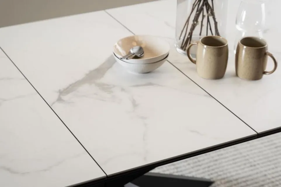 Durch den besonderen Produktionsprozess kann das Keramik naturbedingt leichte Unreinheiten (kleinere Farbunterschiede, Pigmentflecken, geringe Erhöhungen / Vertiefungen und Streifenbilder je nach Lichteinfall) sowie massliche Abweichungen aufweisen, die jedoch den anerkannten Qualitätsstandards entsprechen und keinen Grund zur Beanstandung bilden. Keramik ist wie Glas ein äusserst hartes Material und deswegen empfindsam auf Schläge im Kantenbereich. Solche können zu Rissbildungen des Materiales führen. Bei einer Gesamt-Tischbreite (Ausziehtisch) von über 300 cm kann der nahtlose Übergang der Keramikstruktur von Tischplatte zu Tischplatte nicht gewährleistet werden.
