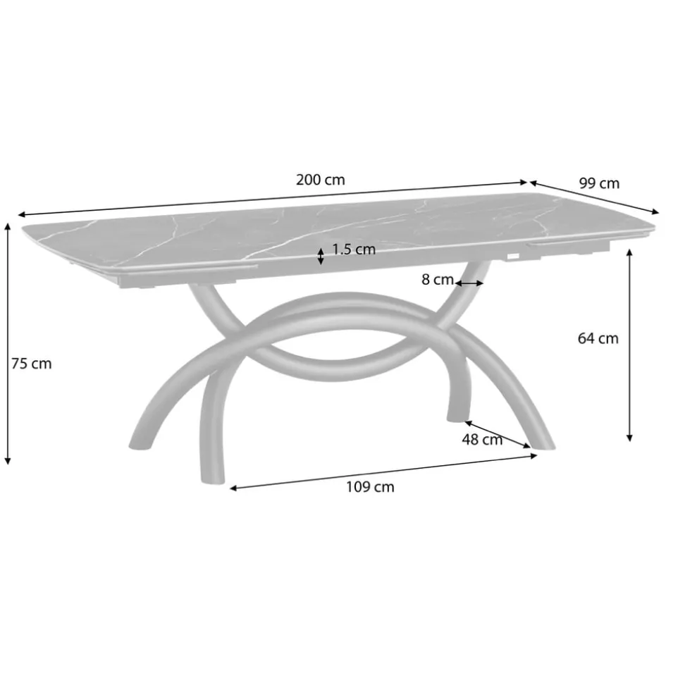 Durch den besonderen Produktionsprozess kann das Keramik naturbedingt leichte Unreinheiten (kleinere Farbunterschiede, Pigmentflecken, geringe Erhöhungen / Vertiefungen und Streifenbilder je nach Lichteinfall) sowie massliche Abweichungen aufweisen, die jedoch den anerkannten Qualitätsstandards entsprechen und keinen Grund zur Beanstandung bilden. Keramik ist wie Glas ein äusserst hartes Material und deswegen empfindsam auf Schläge im Kantenbereich. Solche können zu Rissbildungen des Materiales führen. Bei einer Gesamt-Tischbreite (Ausziehtisch) von über 300 cm kann der nahtlose Übergang der Keramikstruktur von Tischplatte zu Tischplatte nicht gewährleistet werden.