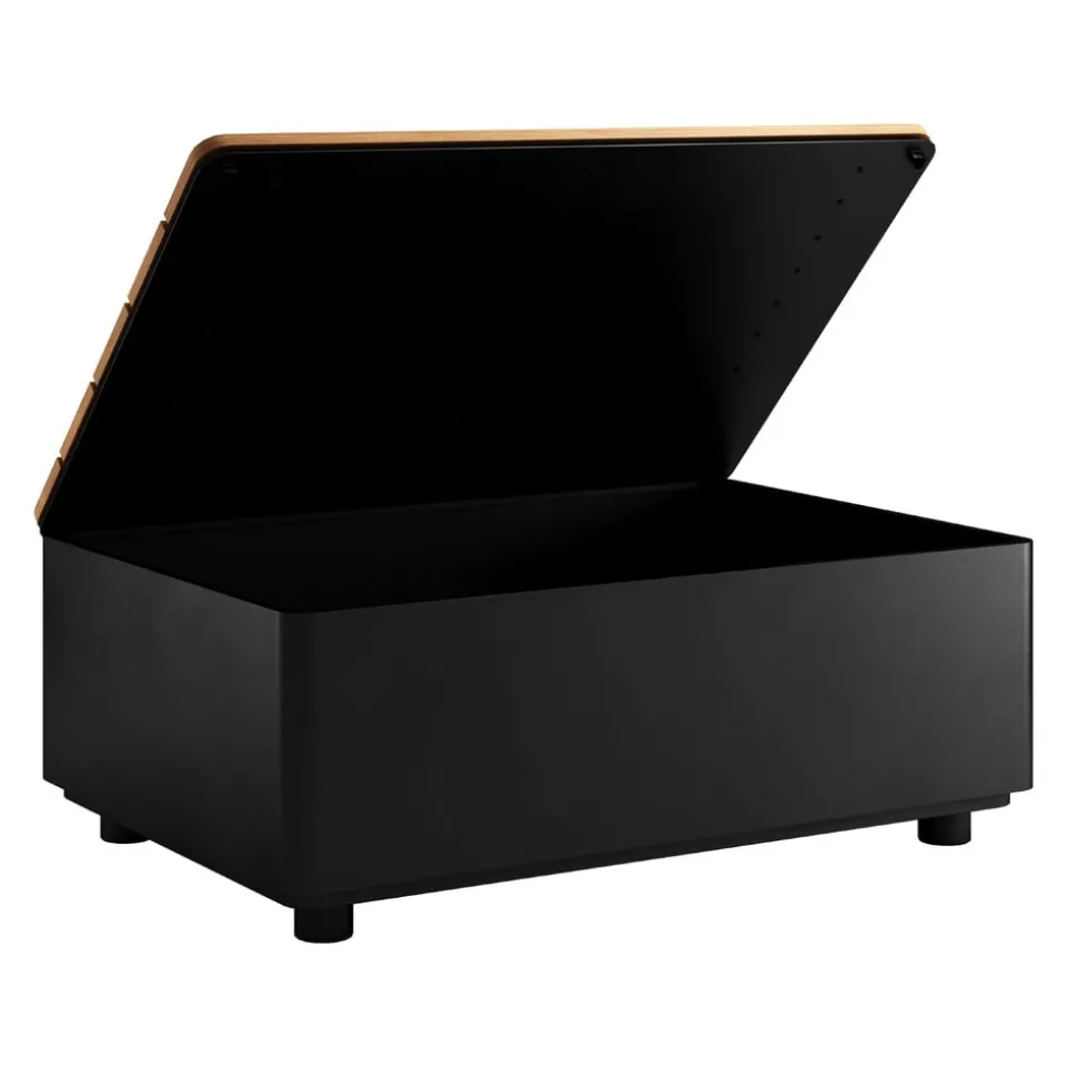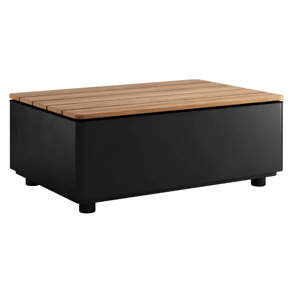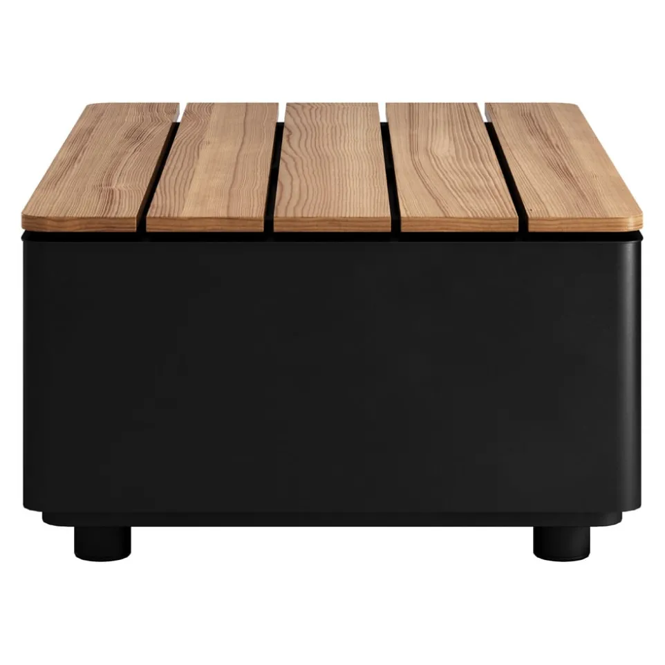 Ein echtes Multitalent: Der Beistelltisch PATIO vereint Ästhetik, Abstellfläche und Aufbewahrung. Während das Gehäuse aus pulverbeschichtetem Aluminium gefertigt wurde, besteht die Tischplatte aus Teakholz. Darunter ist reichlich Stauraum für Decken, Kissen oder Spielgeräte vorhanden. Dank der robusten, hochwertigen Materialien trotzt der Beistelltisch PATIO Wind und Wetter und kann das ganze Jahr über draussen stehen. Er fügt sich ideal neben oder zwischen Lounge-Elemente der gleichnamigen Serie, gibt aber auch als Mittelpunkt einer Sitzgruppe eine glänzende Figur ab. Das Produkt ist aus Echtholz hergestellt und es können Farbabweichungen vorkommen.
