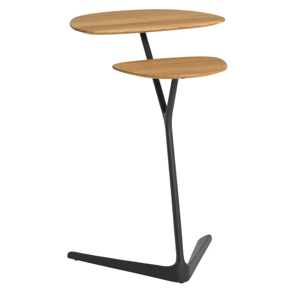 PORTELLO lässt Sie nicht im Stich. Der Beistelltisch wartet mit zwei blattförmigen Platten auf. Die kleine Griffmulde in der oberen Platte dient dem Verrücken des Tisches. So können Sie PORTELLO überall hin mitnehmen. Max. Belastung pro Platte: 5kg. Obere und untere Platte lackiert mit leichtem Korn (Spruzza). Gestell in Aluminium lackiert. Lieferbar in verschiedenen Platten- und Gestellausführungen sowie in verschiedenen Farbvarianten.