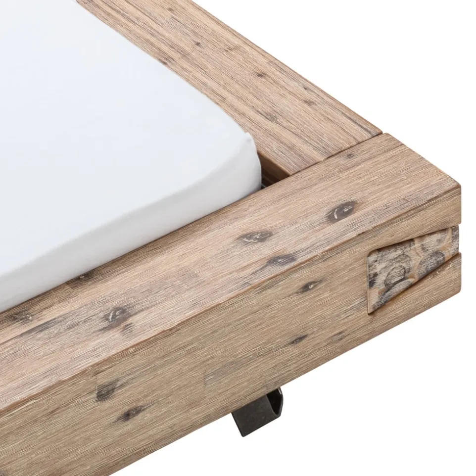Mit MODENA erhält der schlichte Skandi-Look Einzug ins Schlafzimmer. Das Bett mit massiven Rahmen ist ein starkes Statement, das mit einer klaren Formsprache überzeugt. Als Gegenstück sorgt die helle Farbe des Akazienmassivholzes für Leichtigkeit. Ein Eyecatcher sind die raffinierten Eckverbindungen mit Schwalbenschwanz-Zinken, die zudem die Form der Metallfüsse neu interpretieren. Das Bett ist in diversen Grössen erhältlich. Passend dazu finden Sie in unserem Online-Shop diverse Kopfteile, Nachttische und Kommoden derselben Serie. Ohne Bettinhalt (exkl. Lattenrost, Matratze, etc.).