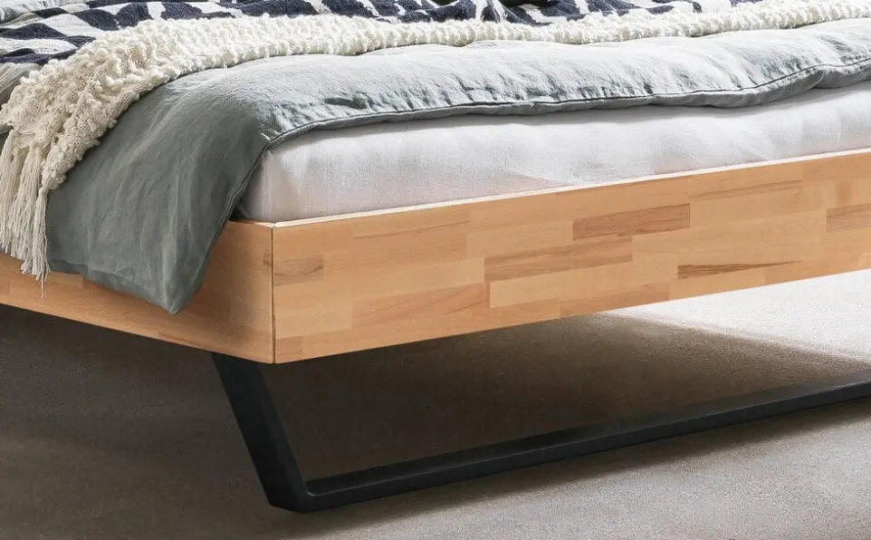 Mit Bett SARNO beweist Hersteller Hasena, dass Massivholz nicht zwingend schwer wirken muss. Der Rahmen aus naturgeölter Kernbuche wird von lässigen Metallkufen getragen. Das ergibt eine leichte und zeitlos elegante Optik. Das Kopfteil gibt es mit oder ohne Polsterung. Das Bett ist in verschiedenen Grössen erhältlich und kommt ohne Bettinhalt (exkl. Lattenrost, Matratze, etc.).