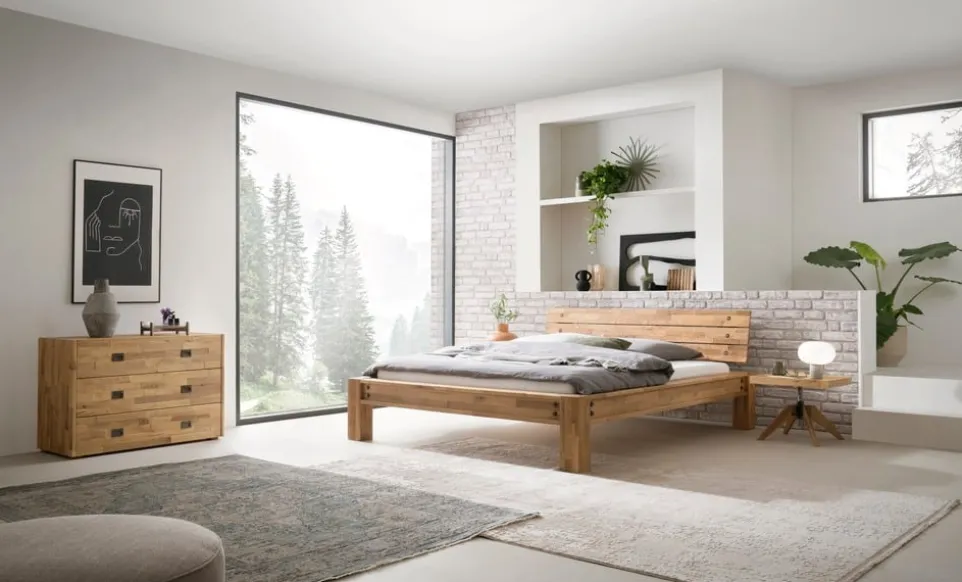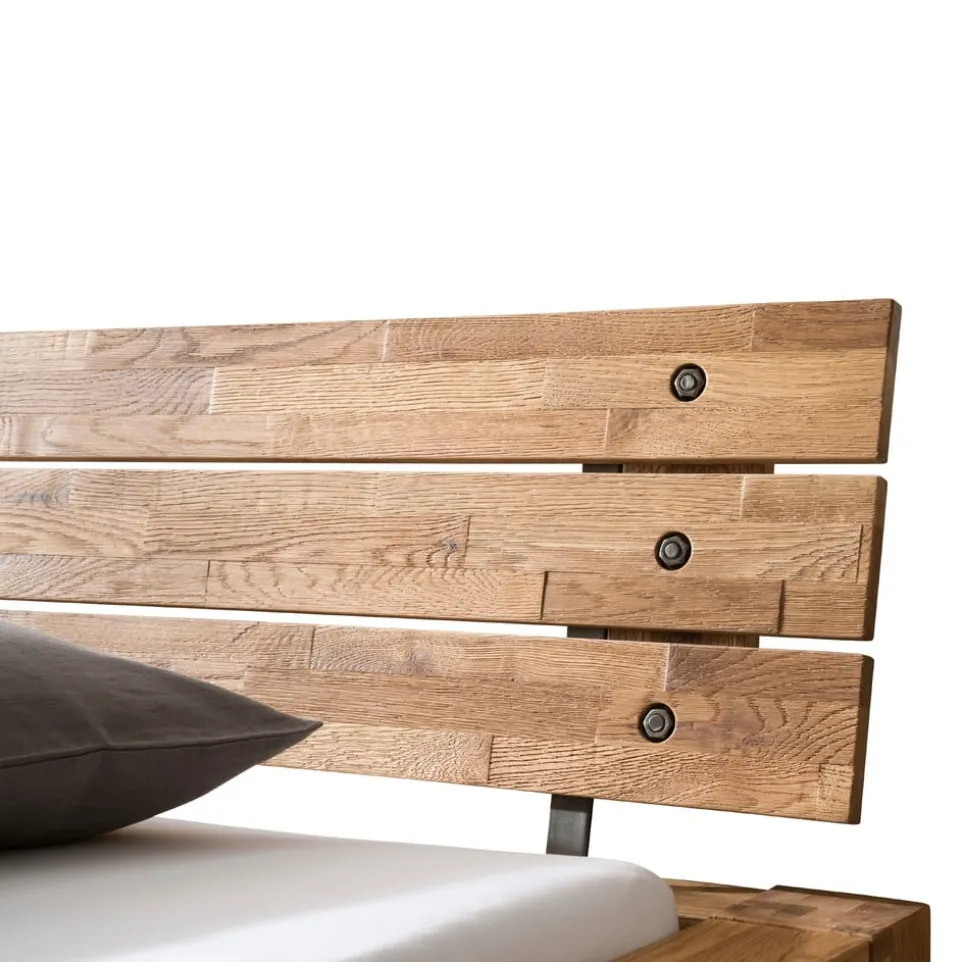 Massive Eiche prägt das Bett Stefano von HASENA und bringt skandinavische Eleganz in dein Zuhause. Diese Bettenart vereint natürliches Wohlgefühl mit einem industriellen Touch, der deinem Raum einen modernen Loft-Charakter verleiht. Die Modell-Linie San Stefano bietet eine perfekte Kombination aus urbanem Chic und gemütlicher Wärme. Gefertigt aus nachhaltig gewonnenem Massivholz, besticht das Bett durch seinen unverwechselbaren Factory-Style. Bei einer Breite ab 160 cm empfiehlt sich die Verwendung einer Längstraverse für zusätzliche Stabilität. Das Kopfteil aus Holz rundet das Design harmonisch ab und sorgt für ein einheitliches Gesamtbild.