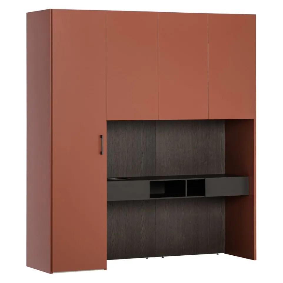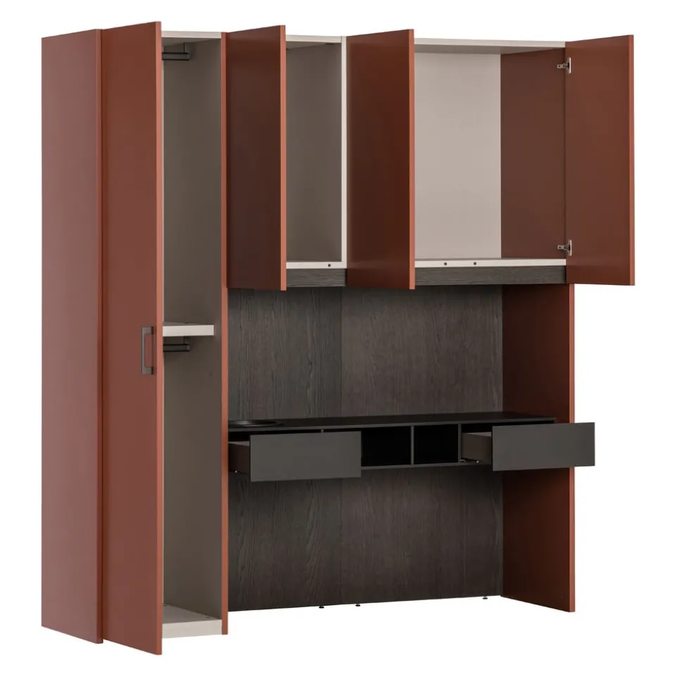 Integrierter Schreibtisch und Soft-Close-System machen den Drehtürenschrank Alfa von Novamobili zu einer perfekten Lösung für dein Zuhause. Dieser Schrank aus hochwertigem Holzwerkstoff bietet dir nicht nur zwei praktische Kleiderstangen, sondern auch zwei geräumige Schubladen mit sanft schliessenden Mechanismen. Das durchdachte Innenleben sorgt für eine optimale Organisation deiner Kleidung und Accessoires. Die Front aus Holzwerkstoff verleiht dem Schrank ein elegantes und modernes Aussehen. Mit diesem Schrank hast du eine stilvolle und funktionale Ergänzung, die sowohl als Stauraumwunder als auch als Arbeitsbereich dient.