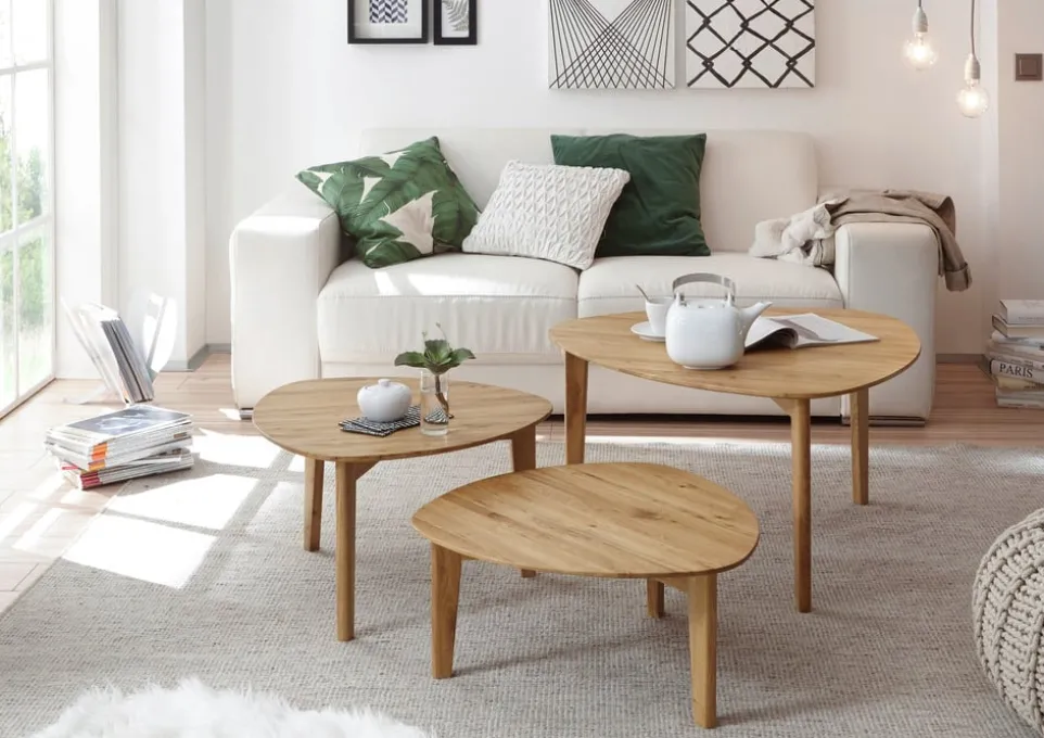 Erlebe die Vielseitigkeit des Dreisatztischs Camilla von Johann Jakob. Die nierenförmigen Tischplatten aus massiver Asteiche bieten eine einzigartige Kombination aus Eleganz und Funktionalität. In den Grössen Klein (27x60x60 cm), Mittel (35x60x60 cm) und Gross (43x88x80 cm) passt der Dreisatztisch perfekt in jeden Raum. Die hochwertige Verarbeitung des massiven Holzes garantiert Langlebigkeit und Stabilität. Egal, ob du den Tisch als Couchtisch, Beistelltisch oder Dekoration nutzt, der Dreisatztisch Camilla wird zum Blickfang in deinem Zuhause. Hol dir ein Stück Natur in deine vier Wände und geniesse die Qualität von Johann Jakob.