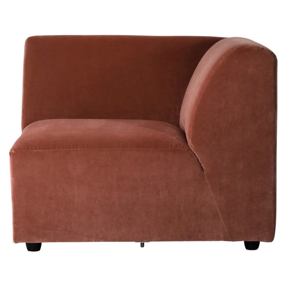 Tauche ein in die luxuriöse Welt von HKliving mit dem Eckelement Jax. Samt, das edle Material, verleiht diesem Polstermöbel eine exklusive Haptik und ein einladendes Ambiente. Die geschickte Verarbeitung des Textils sorgt nicht nur für Komfort, sondern auch für Strapazierfähigkeit. Als Eckelement bietet Jax flexible Gestaltungsmöglichkeiten für dein Wohnzimmer und schafft so gemütliche Ecken zum Entspannen. Ob alleinstehend oder als Teil einer Sitzgruppe, Jax passt sich deinen Wohnbedürfnissen an. Die Kombination aus ästhetischem Design und praktischer Funktion macht dieses Möbelstück zu einem idealen Begleiter für stilbewusste Einrichtungsenthusiasten.