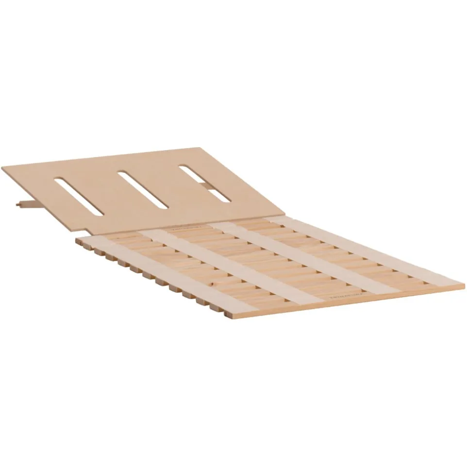 Die Fichtenholz-Latten dieses Rollrosts werden mit einem Baumwollband untereinander verbunden. Dies bildet eine stabile, ebene Liegefläche, die nicht durchhängt. Dank guter Luftzirkulation ist zudem die notwendige Hygiene gewährleistet. Zusammenrollbar und leicht transportierbar. Extra Plus: Kopfhochstellung in 8Stufen mit automatischer Rückführung. Bitte beachten Sie: Dieser Rollrost eignet sich ausschliesslich für ein von Trinatura hergestelltes Bett und ist nicht kompatibel mit anderen Betten.