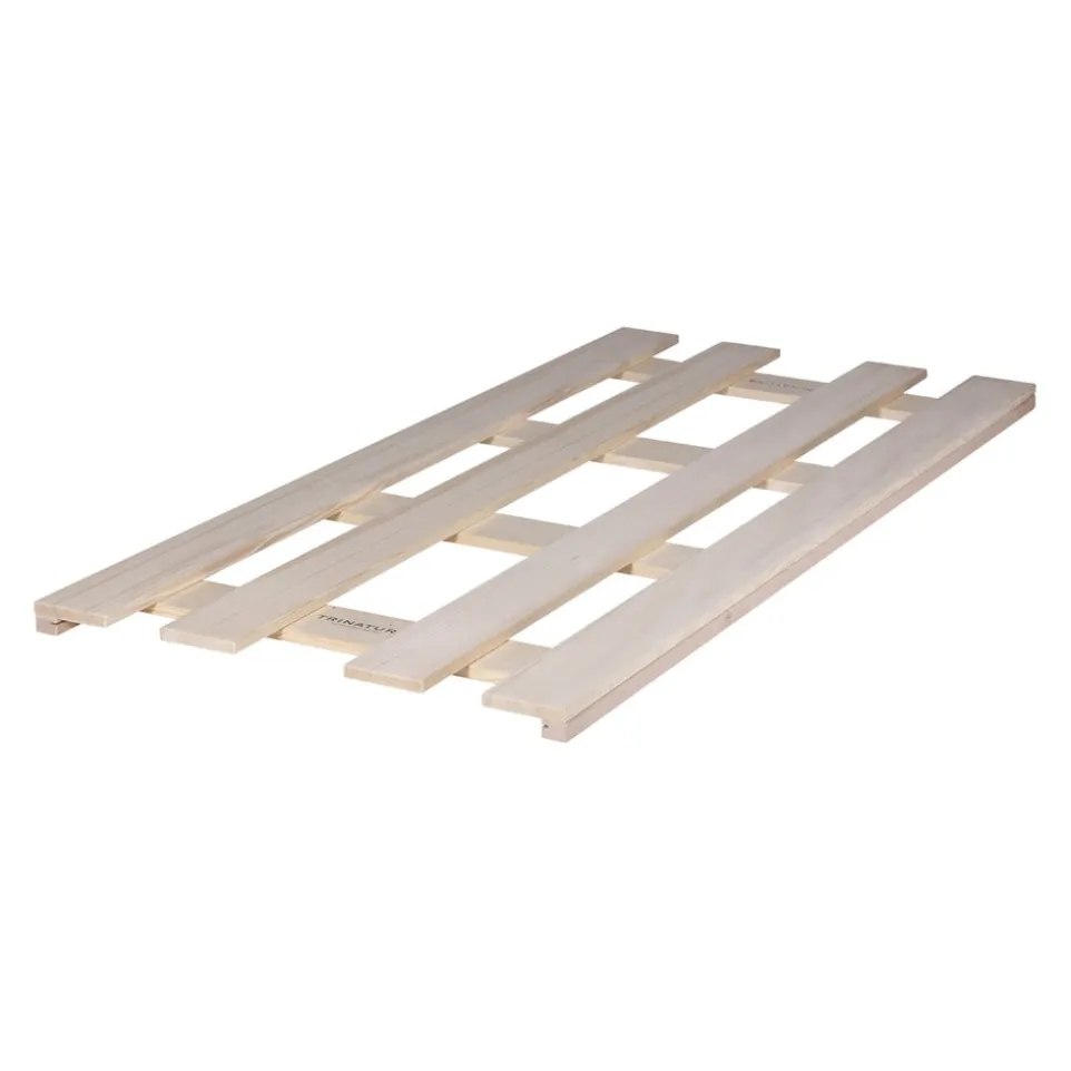 Die Fichtenholz-Latten dieses Rost-Rahmens werden mit einem Baumwollband untereinander verbunden. Dies bildet eine stabile, ebene Liegefläche, die nicht durchhängt. Dank guter Luftzirkulation ist zudem die notwendige Hygiene gewährleistet. Gut zu wissen: Dieser Einlegerahmen eignet sich für alle herkömmlichen Betten.