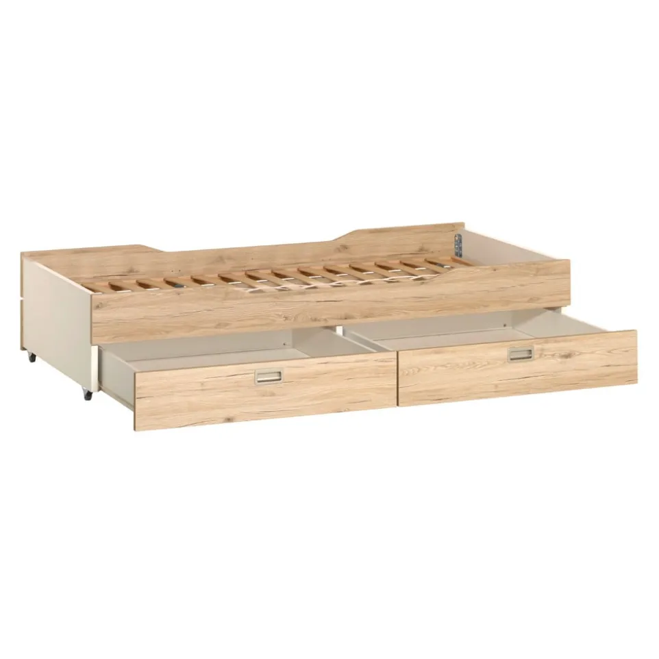Gut gestützt durch die Nacht. Der Einlegerahmen für das Bett FIONN bietet alles, was Kinder und Jugendliche für einen gesunden Schlaf brauchen. Die Lattenfederung ist manuell verstellbar. Der Rahmen aus Buchensperrholz ist in diversen Grössen erhältlich. Von der Serie FIONN sind weitere Elemente wie Matratzen, Einlegerahmen und diverse Kissen erhältlich.