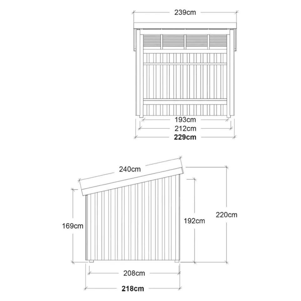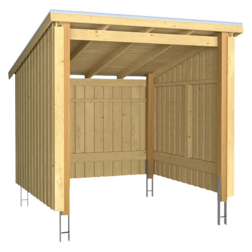 | Ausstattung | inkl. Beschläge/Schrauben, Dachpappe, Aluleisten und H-Pfostenfüße |