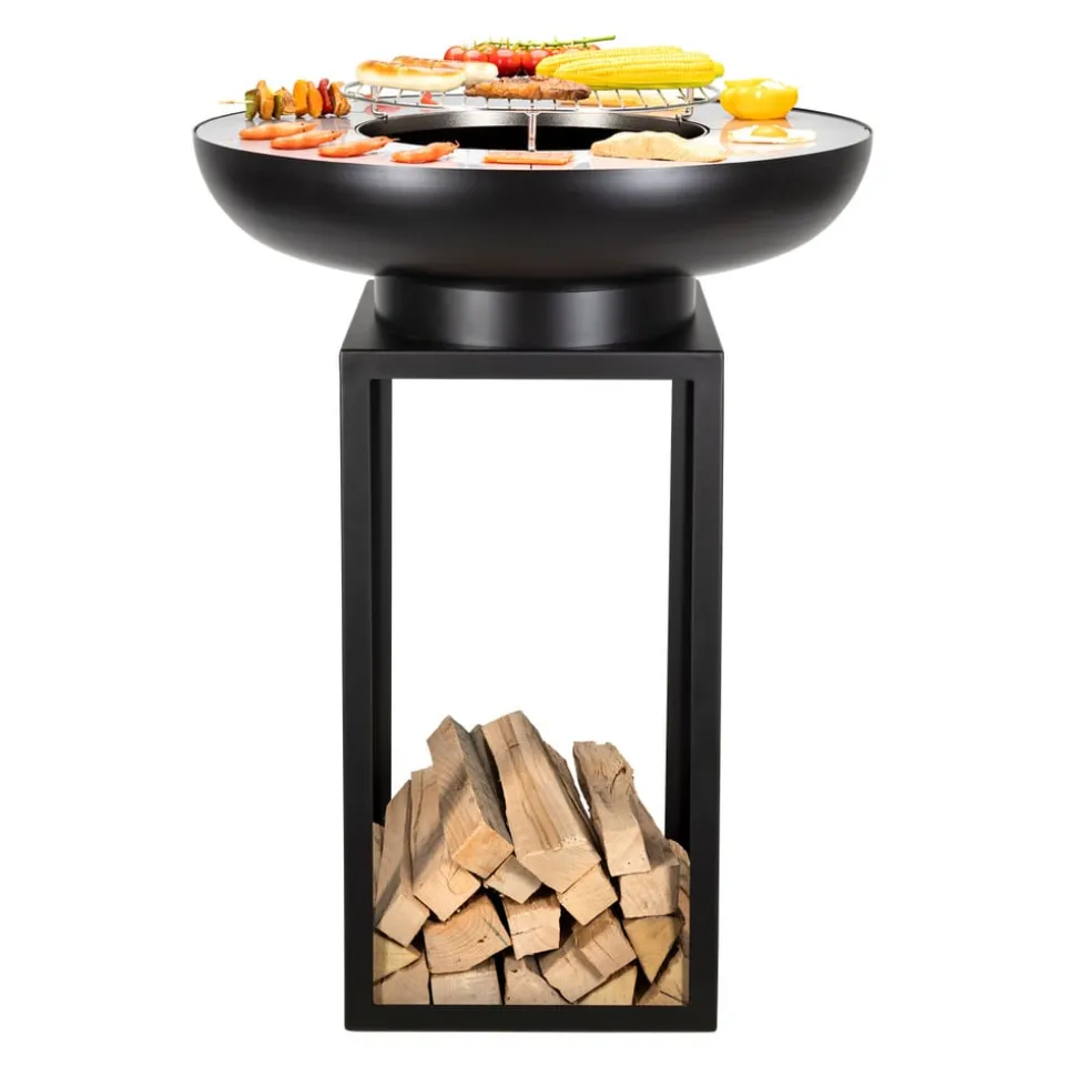 Erlebe die Vielseitigkeit der Feuerschale Galeria von Nouvel, die durch eine robuste, lackierte Stahlkonstruktion überzeugt. Die hochwertige Edelstahl-Plancha-Platte macht sie zu einem Allrounder für gesellige Abende im Freien. Die vierteilige Ausstattung bietet dir zahlreiche Möglichkeiten zur Zubereitung verschiedenster Köstlichkeiten. Der Grillrost aus Edelstahl garantiert eine gleichmässige Wärmeverteilung und ist leicht zu reinigen. Diese Feuerschale vereint Funktionalität und Stil und wird so zum Highlight in deinem Garten. Lass dich von der Kombination aus modernem Design und praktischen Features begeistern und geniesse gemütliche Abende am Feuer.