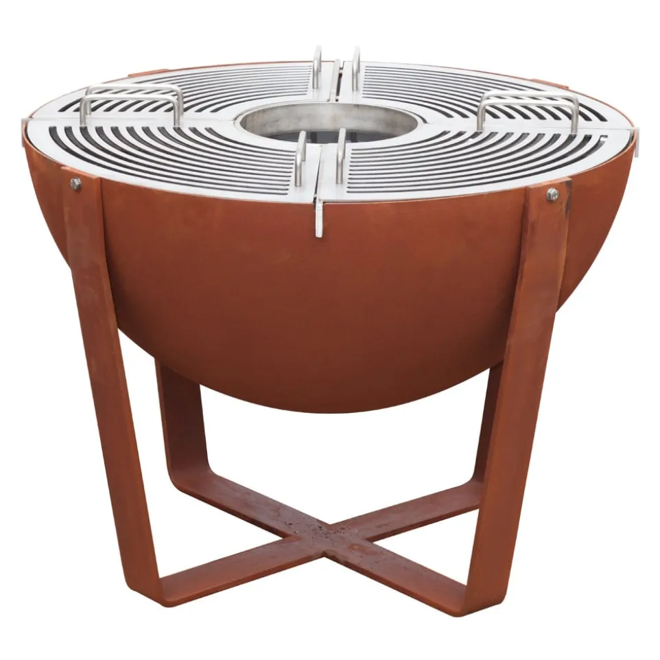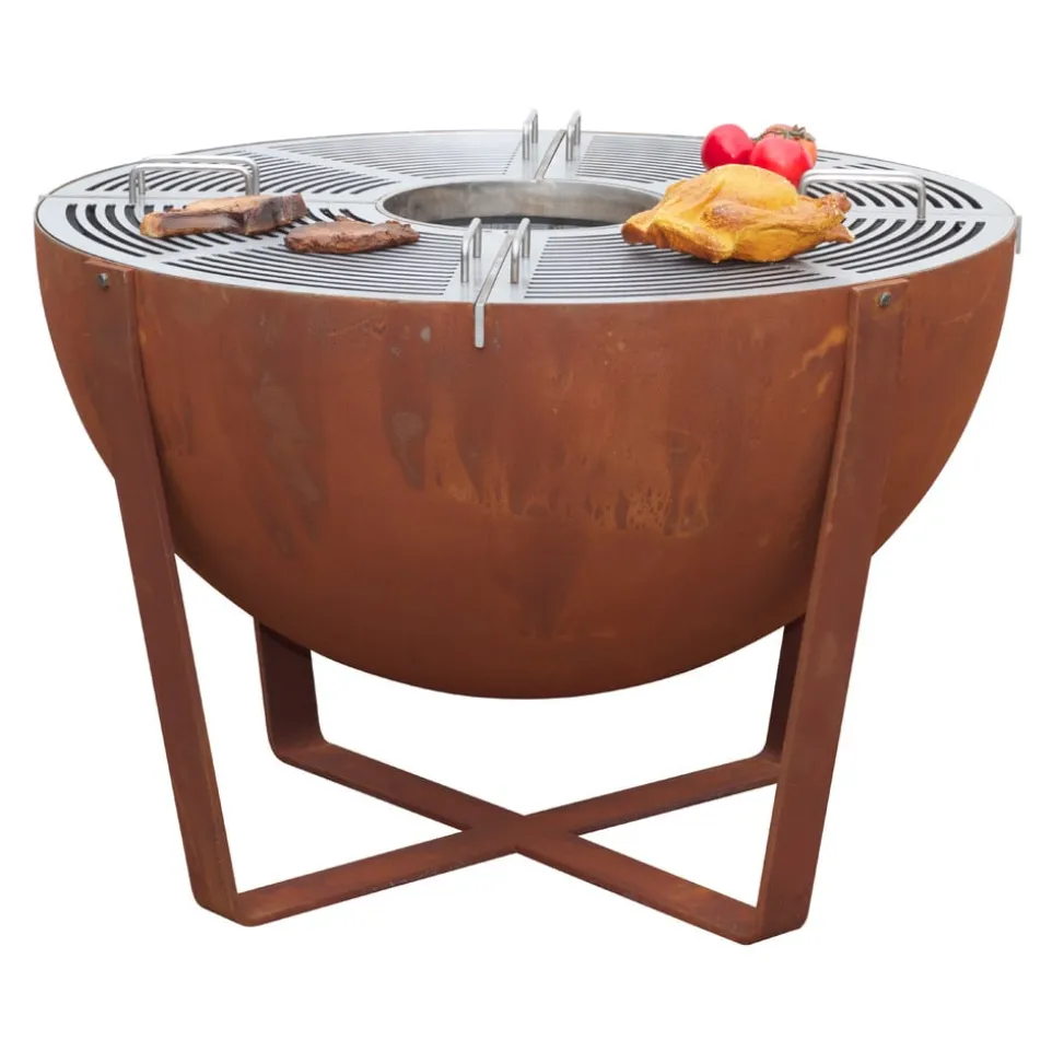 Gibt es etwas zu feiern? Dann darf IRIS nicht fehlen. Die Grill- und Feuerschale aus gerostetem Stahl ist ideal für grössere Gesellschaften. Mit den eingearbeiteten Grillschlitzen eignet sie sich besonders für die Zubereitung von Fleisch. Der viergeteilte Edelstahlrost mit praktischen Griffen ist einfach entfernbar, so dass Sie den Abend gut am offenen Feuer ausklingen lassen können.