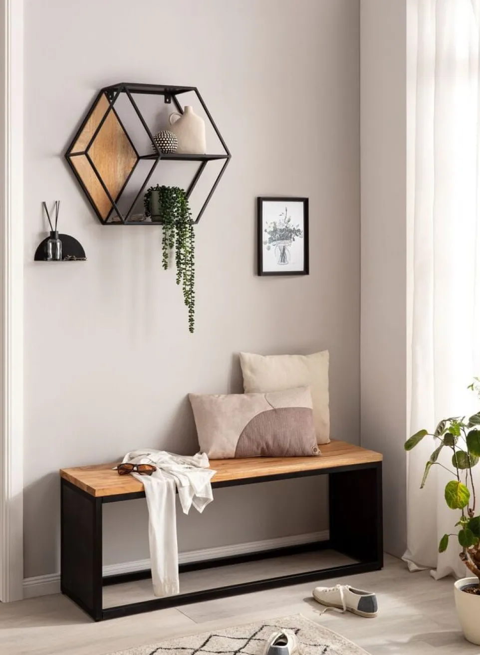 Erlebe den Charme der Natur mit der Garderobenbank Akazie von MID.YOU. Diese elegante Garderobenbank kombiniert Funktionalität und Stil in deinem Eingangsbereich. Die robuste Akazienholz-Konstruktion bietet nicht nur eine stabile Sitzgelegenheit, sondern auch praktischen Stauraum für Schuhe und Accessoires. Das zeitlose Design fügt sich nahtlos in jede Einrichtung ein und verleiht deinem Zuhause eine warme, einladende Atmosphäre. Mit dieser Garderobenbank schaffst du Ordnung und setzt zugleich ein stilvolles Statement. Entdecke die Qualität und das Design von MID.YOU und bereichere deinen Wohnraum mit dieser einzigartigen Garderobenbank.