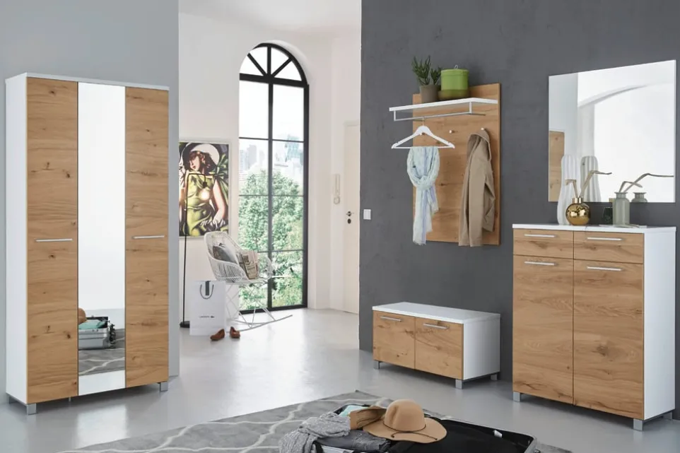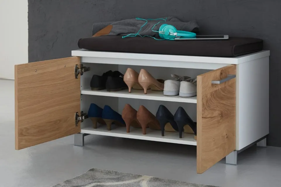 Mit der Garderobenbank Andalo von Dieter Knoll erhältst du ein funktionales Kunstwerk für deinen Eingangsbereich. Die Bank aus hochwertiger Eiche ist furniert und besticht durch ihre natürliche Holzstruktur. Sie bietet nicht nur eine bequeme Sitzgelegenheit, sondern auch praktischen Stauraum für deine Schuhe oder andere Utensilien. Das zeitlose Design fügt sich nahtlos in jedes Ambiente ein und sorgt für eine warme, einladende Atmosphäre. Die Garderobenbank Andalo vereint Stil und Funktionalität in Perfektion und setzt dabei auf die bewährte Qualität von Dieter Knoll. Gönn dir dieses edle Möbelstück und bereichere deinen Flur.
