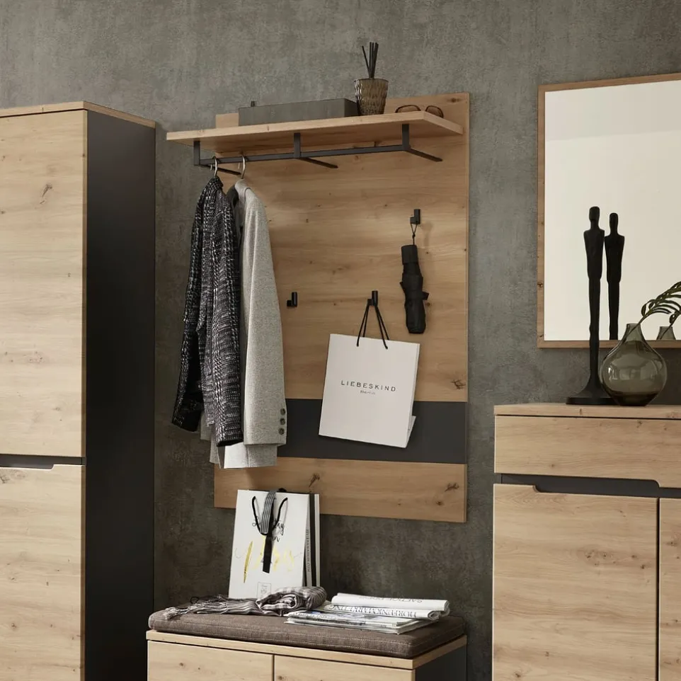 Das Garderobenpaneel Memphis von Voleo überzeugt durch seine praktische Kombination aus Tablar und Kleiderstange. Gefertigt aus hochwertigem MDF-Holz, bietet es nicht nur Stabilität, sondern auch eine ansprechende Optik. Die durchdachte Konstruktion ermöglicht eine platzsparende Aufbewahrung von Jacken, Mänteln und Accessoires. Das elegante Design fügt sich nahtlos in jede Einrichtung ein und sorgt für Ordnung im Flur oder Eingangsbereich. Mit diesem Garderobenpaneel schaffst du schnell und einfach mehr Stauraum. Entscheide dich für das Garderobenpaneel Memphis und bringe Stil und Funktionalität in dein Zuhause.