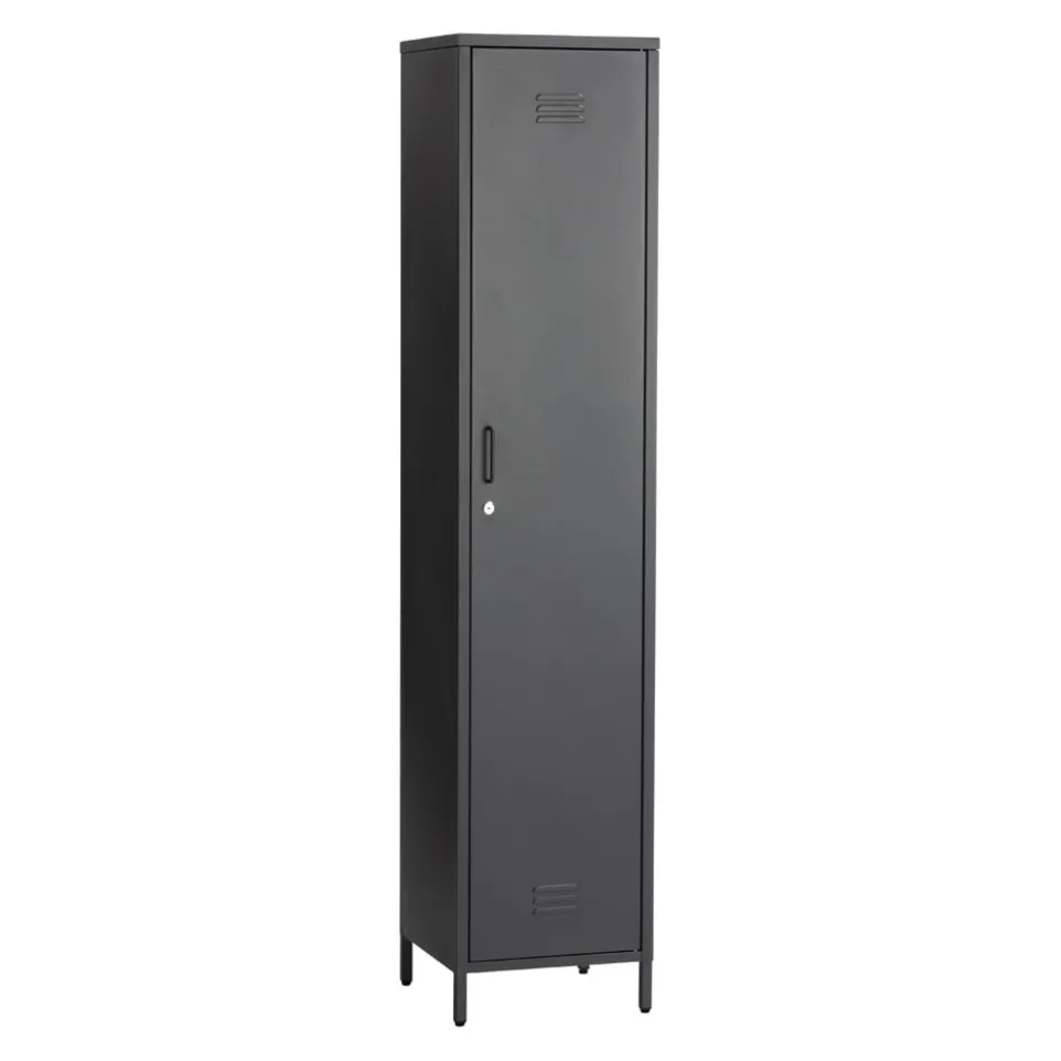 Der Garderobenschrank KOLLER beeindruckt durch seine stabile Konstruktion aus hochwertigem Metall. Mit seinem pulverbeschichteten Oberflächenfinish bietet er eine langlebige und pflegeleichte Lösung für deinen Eingangsbereich. Der Schrank von one ist mit einer praktischen Tür ausgestattet, die einen einfachen Zugang zu deinen Kleidungsstücken ermöglicht. Ob im Flur, Schlafzimmer oder Büro, dieser Schrank fügt sich nahtlos in jede Umgebung ein. Seine kompakte Grösse und das funktionale Design machen ihn zur idealen Wahl, um Ordnung zu schaffen und deinen Raum stilvoll zu gestalten. Vertraue auf die Qualität von one für eine aufgeräumte Garderobe.