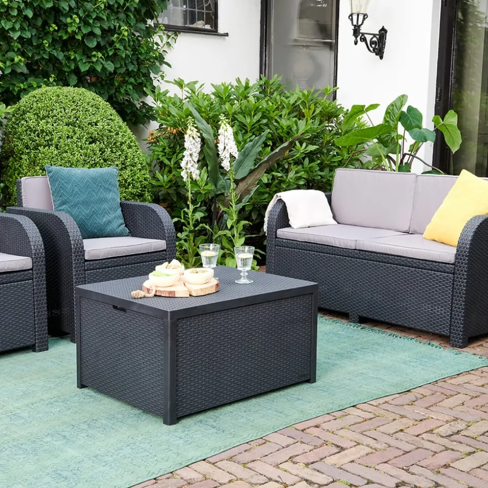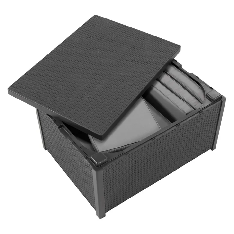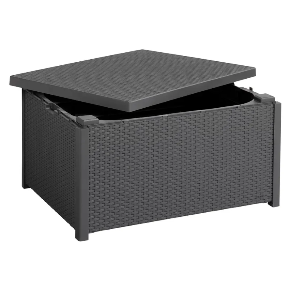Da steckt einiges drin: Loungetisch ARICA kommt mit einem integrierten Staufach. Der Hocker ist die optimale Ergänzung zu Ihrer Outdoor-Lounge. Nutzen Sie ihn als dekorativen Gartentisch und versorgen Sie abends Sitzkissen und Tischdekoration im Trockenen. Aus witterungs- und UV-beständigem Kunststoff.