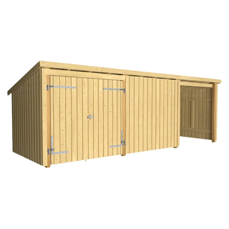 | Ausstattung | inkl. Beschläge/Schrauben, ohne Dachpappe/Aluleisten/ H-Pfostenfüsse |